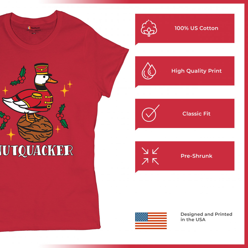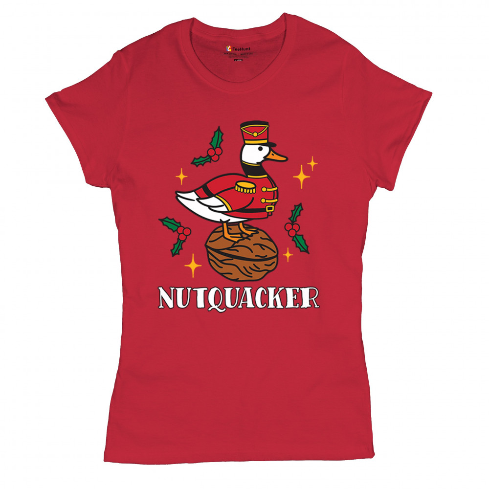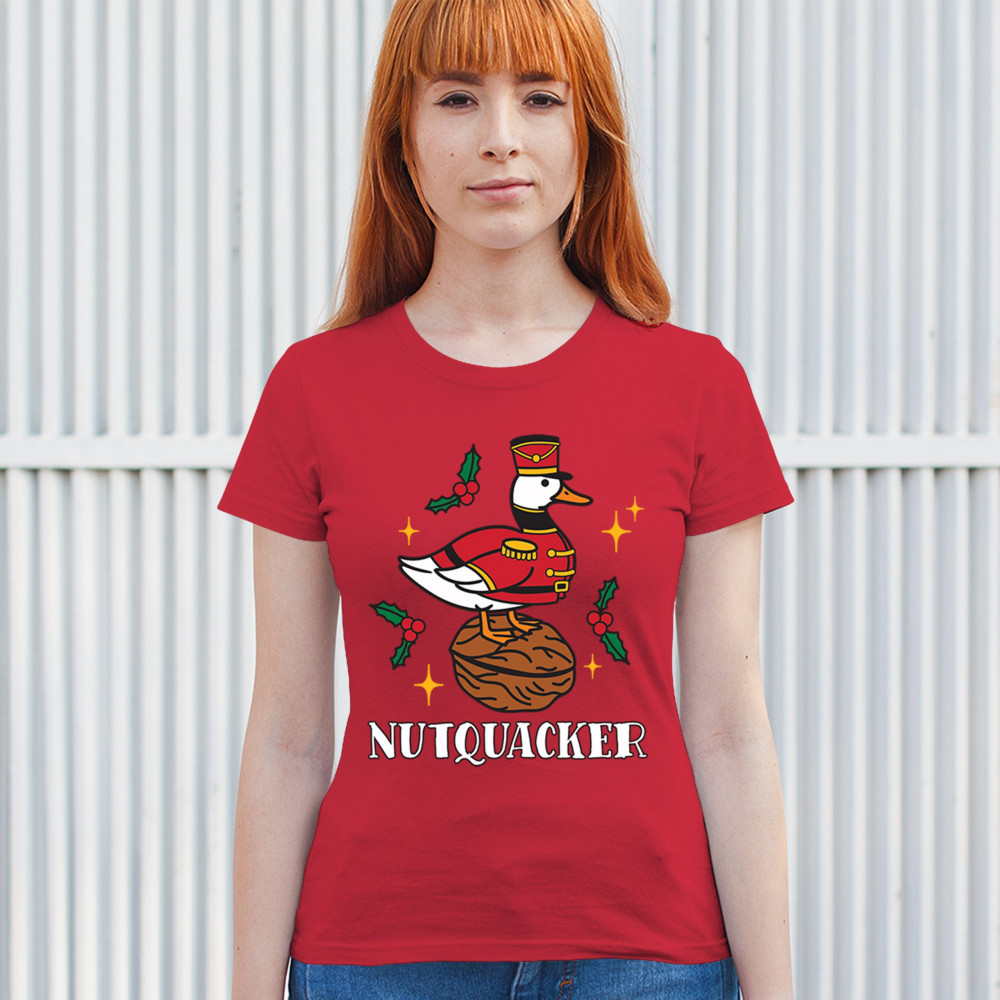 Funny Nutquacker Christmas design featuring a festive duck, holiday humor, and seasonal charm. Great for parties, gifts, and cheerful holiday style.
