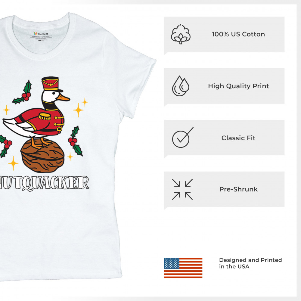 Funny Nutquacker Christmas design featuring a festive duck, holiday humor, and seasonal charm. Great for parties, gifts, and cheerful holiday style.