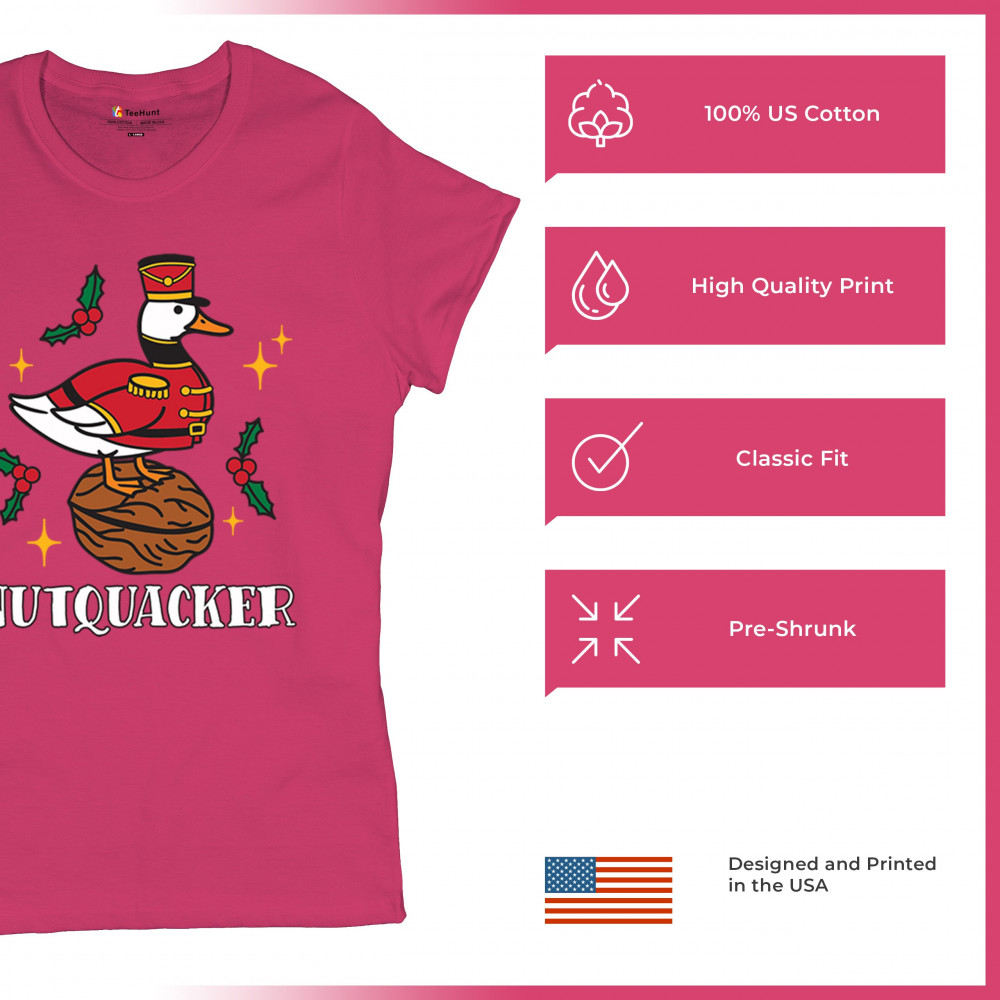 Funny Nutquacker Christmas design featuring a festive duck, holiday humor, and seasonal charm. Great for parties, gifts, and cheerful holiday style.