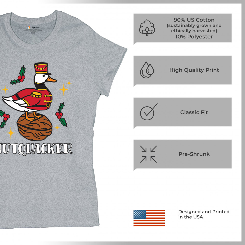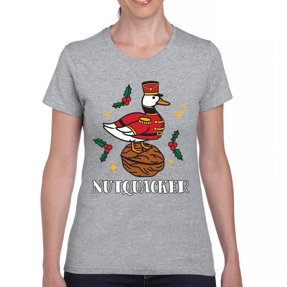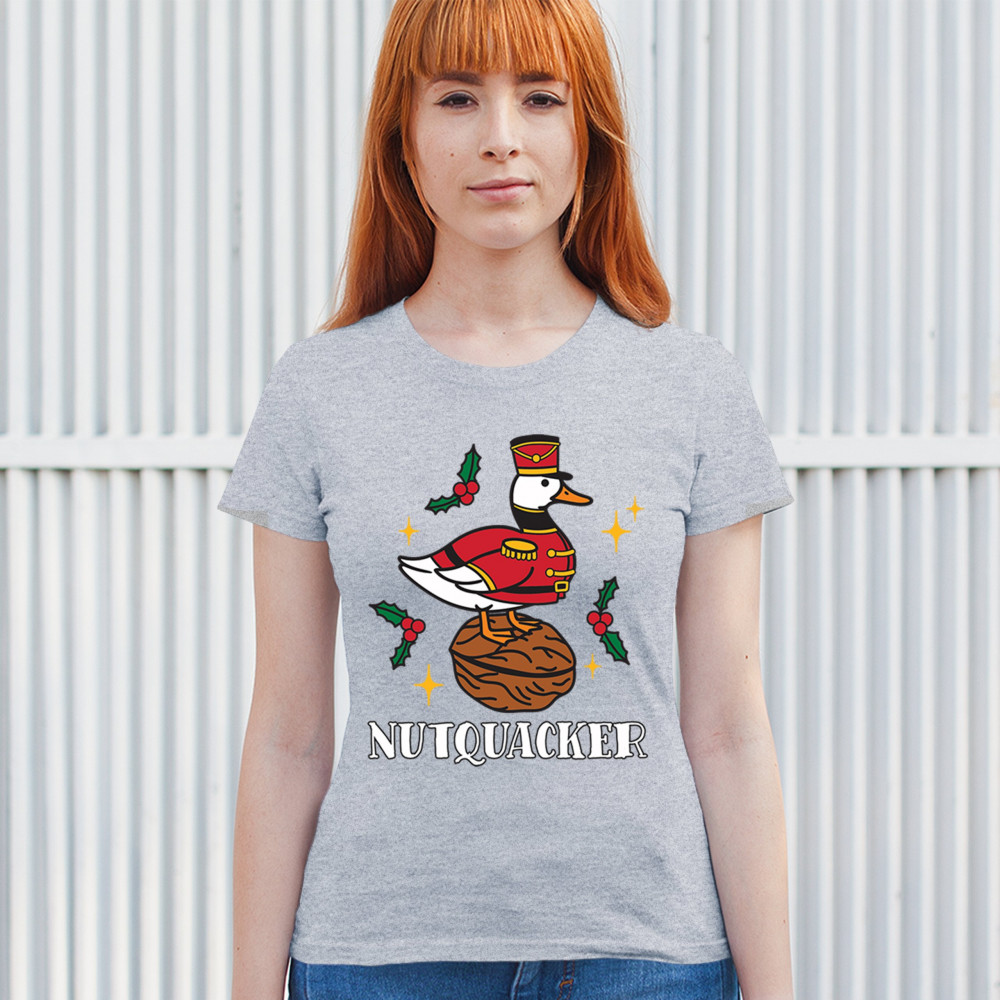Funny Nutquacker Christmas design featuring a festive duck, holiday humor, and seasonal charm. Great for parties, gifts, and cheerful holiday style.
