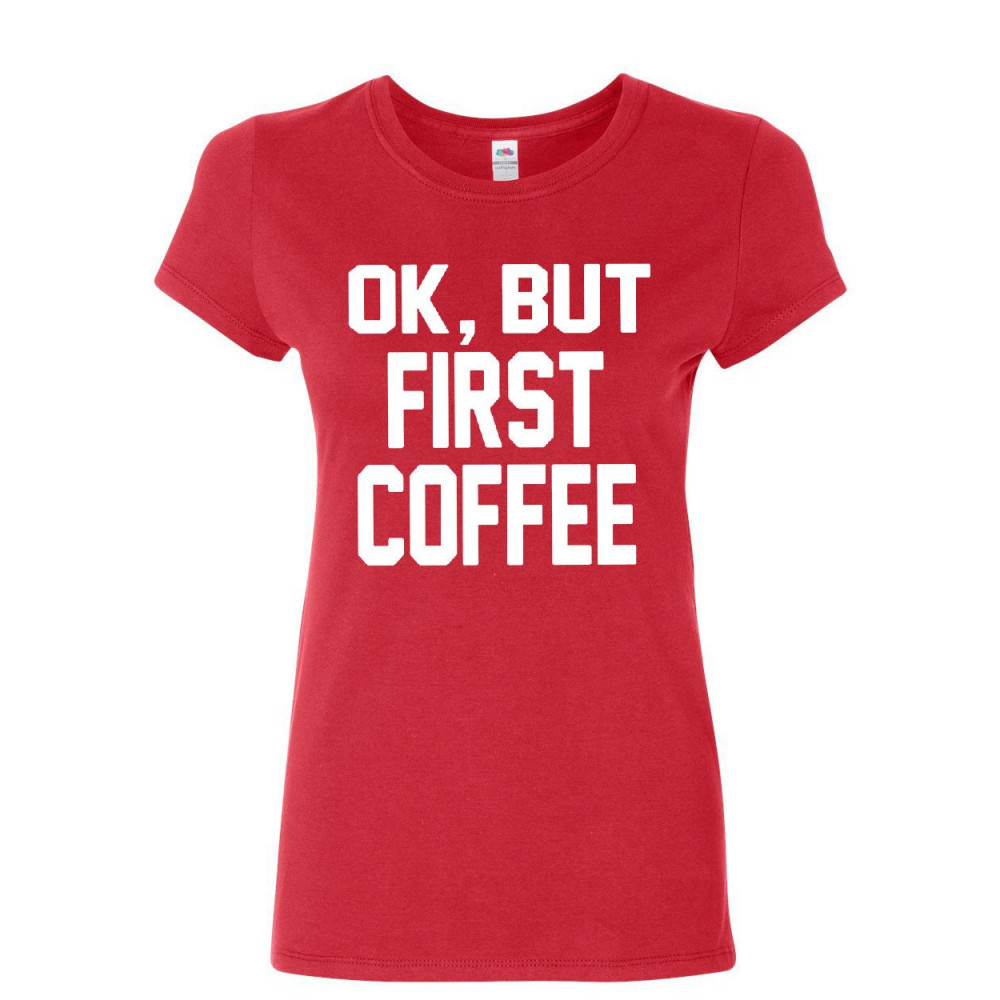 OK, BUT FIRST COFFEE cotton t-shirt coffee drinker red