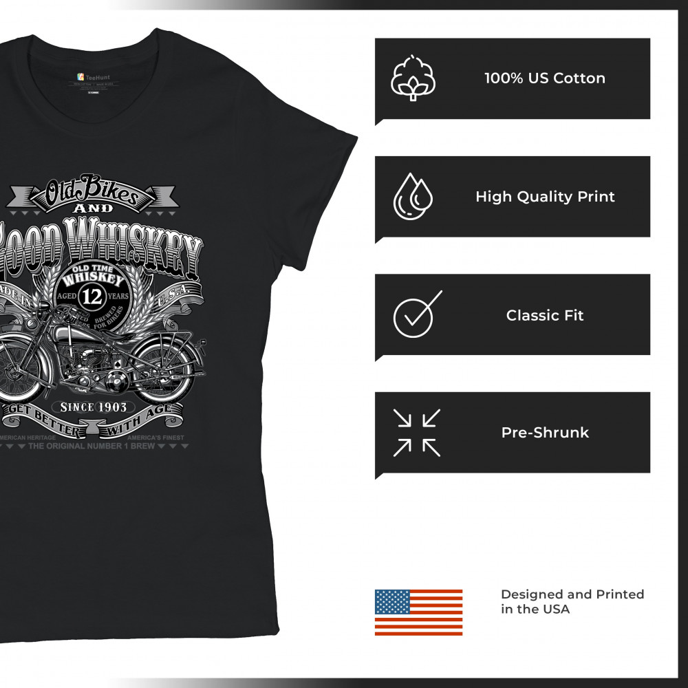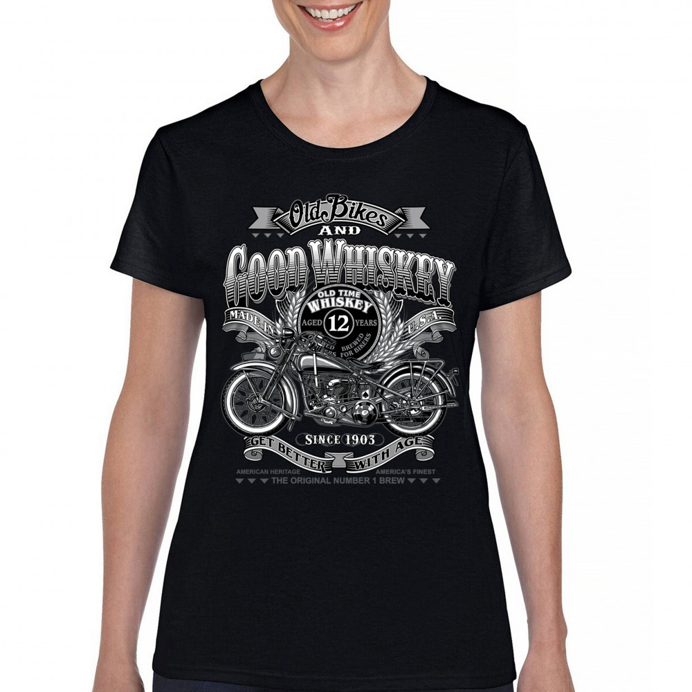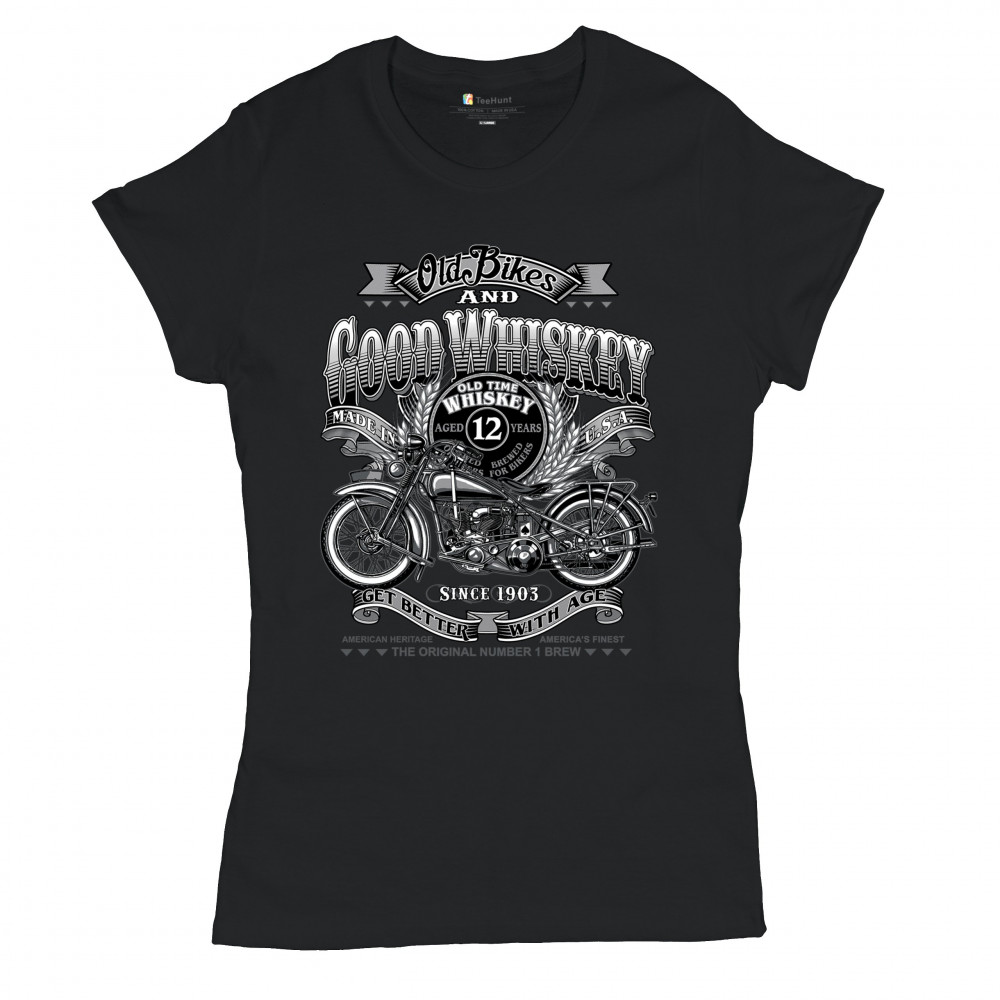 OLD BIKES GOOD WHISKEY t-shirt vintage 1903 biker american heritage women's tee black