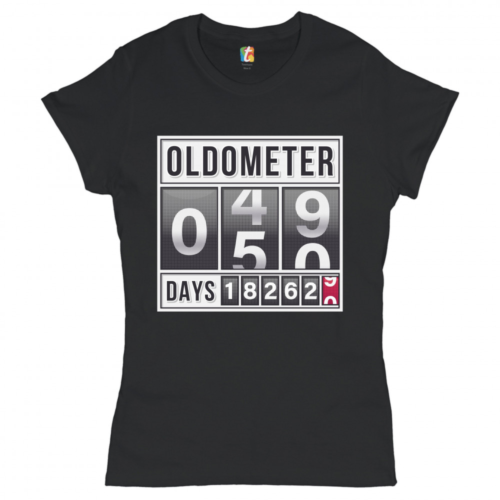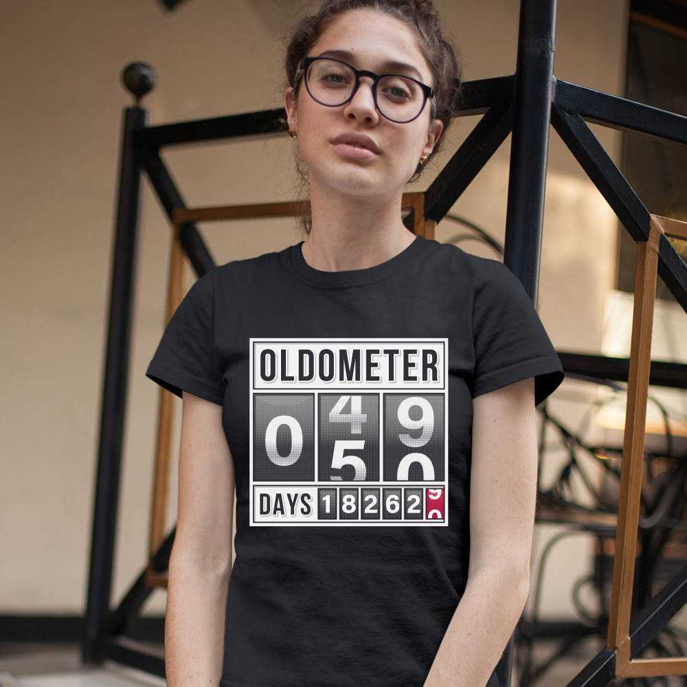 OLDOMETER 49-50 t-shirt 50th anniversary 50 af funny odometer women's tee black