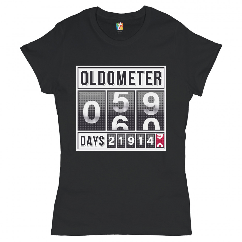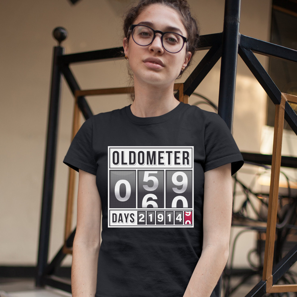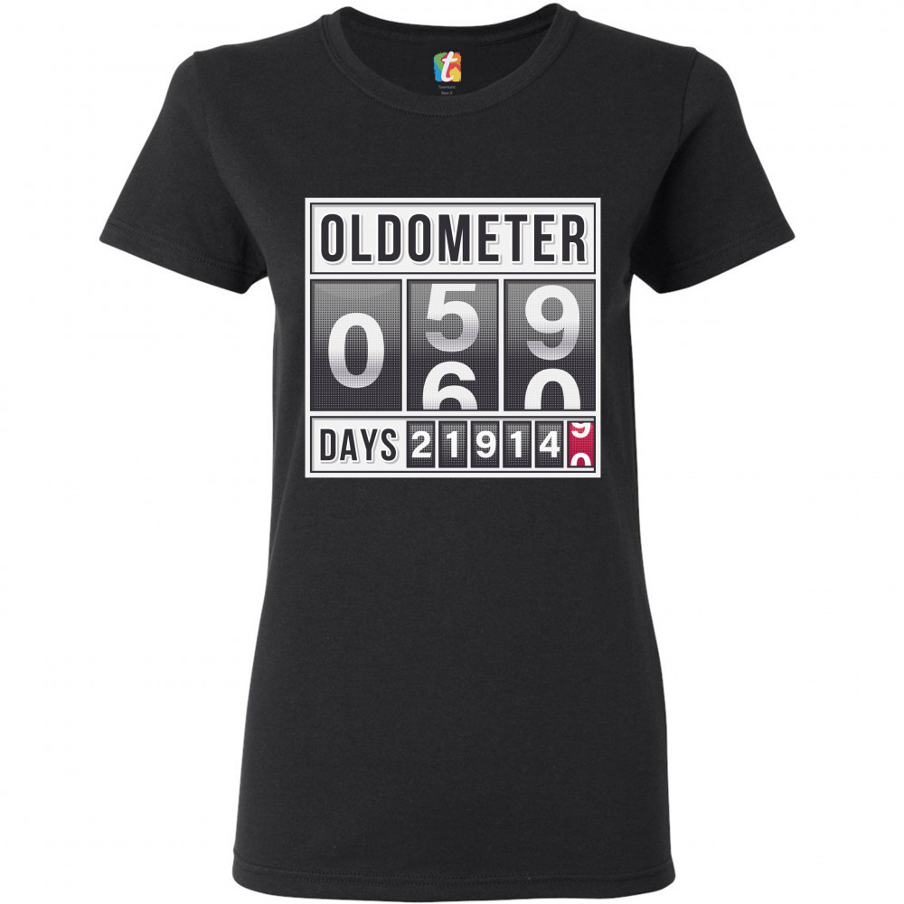OLDOMETER 59-60 t-shirt old lives matter funny odometer 60 af women's tee black