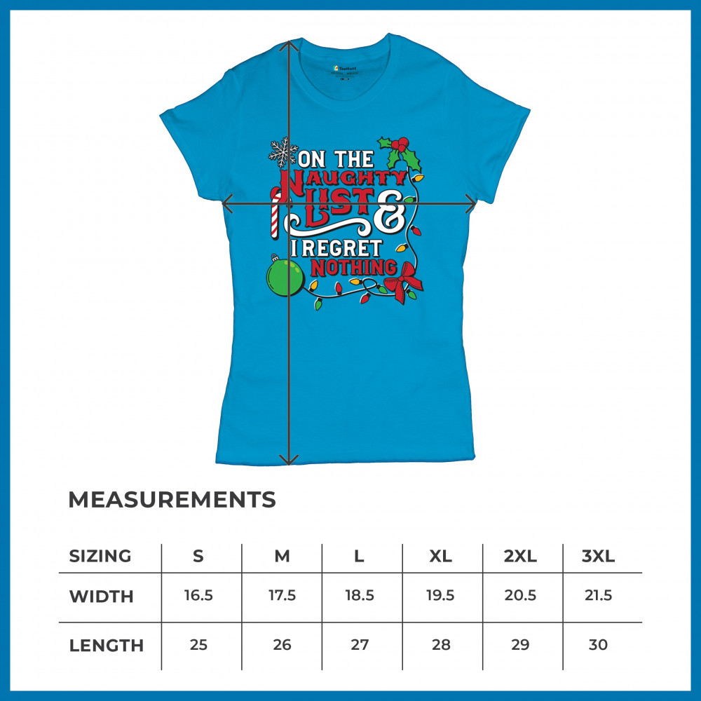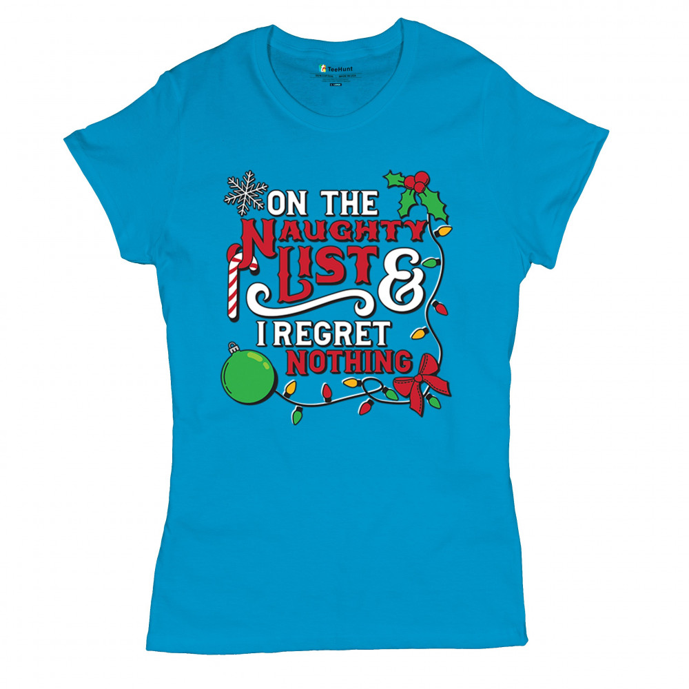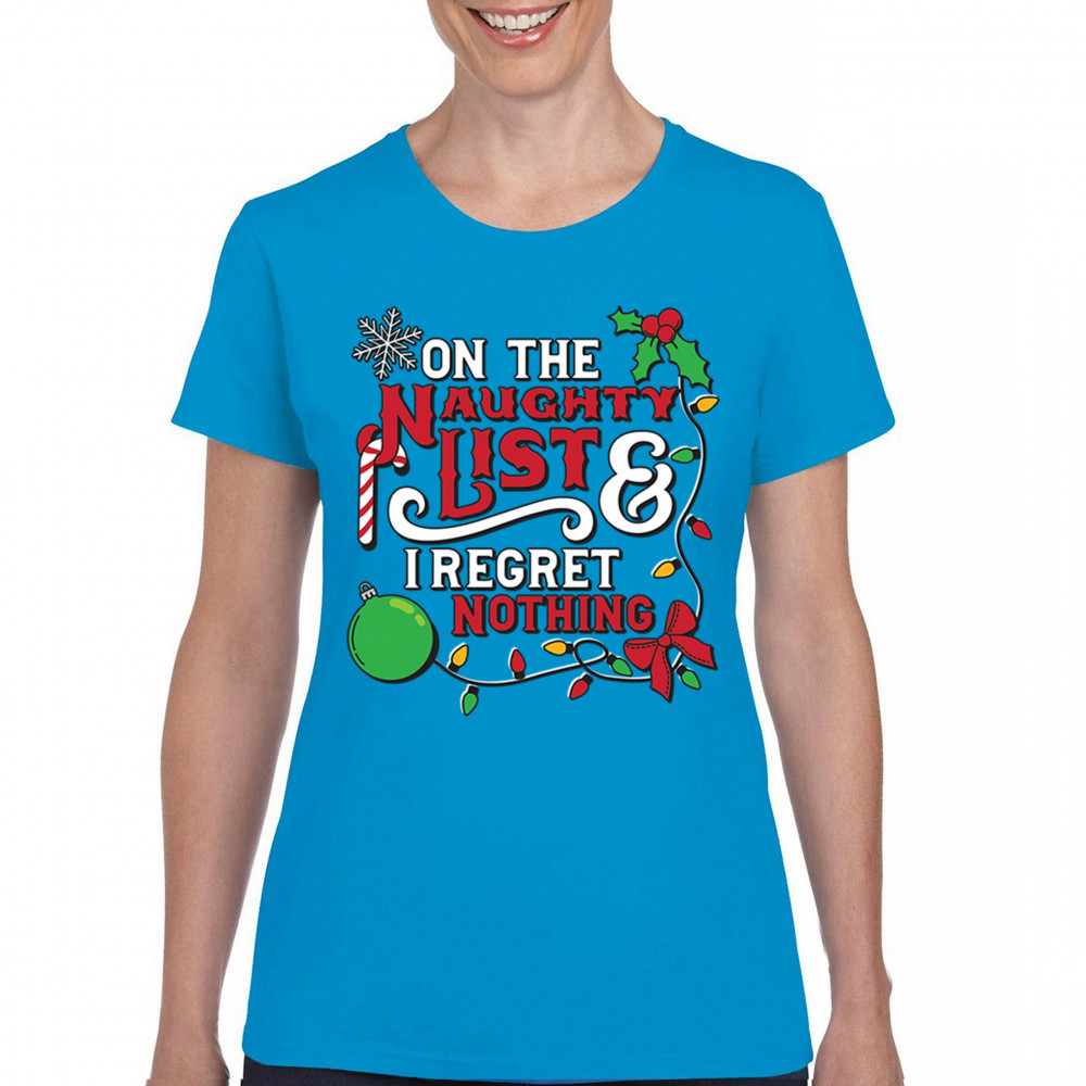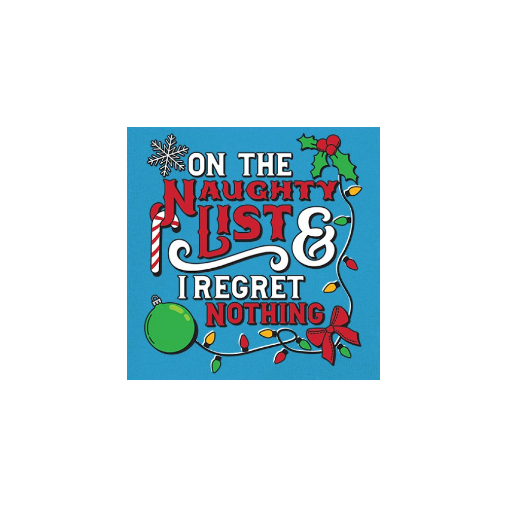 Celebrate the holidays with the playful “Naughty List & I Regret Nothing†design. Perfect for festive gatherings, ugly sweater parties, and holiday fun!