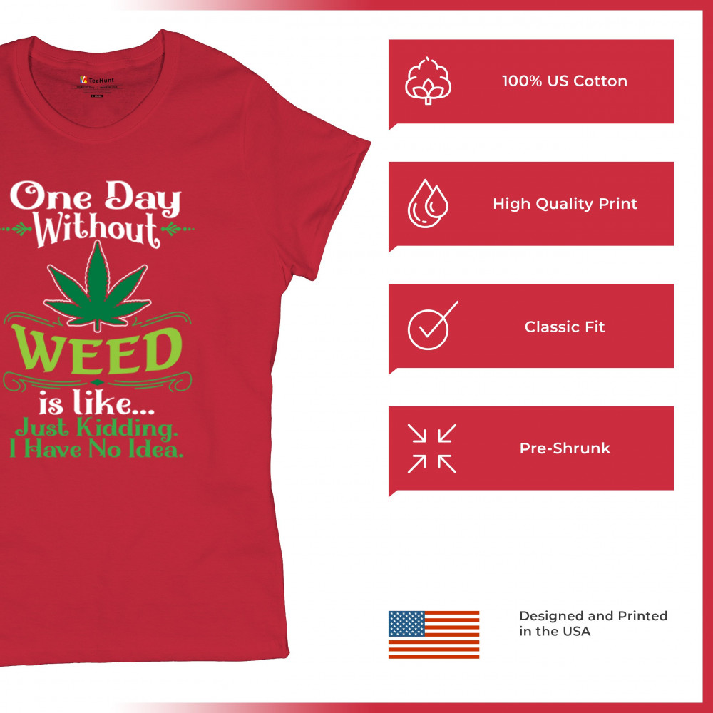 Humorous "One Day Without Weed" design with a bold cannabis leaf. Perfect for fans of Mary Jane, stoned humor, and relaxed, trippy style. Ideal for chill vibes.