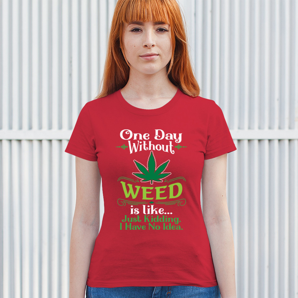Express your love for Mary Jane and your sense of humor with our "One Day Without Weed" design. Featuring a bold cannabis leaf and a playful, witty message, this design is perfect for those who enjoy the chill vibes of cannabis culture. Ideal for relaxing with your best buds, making a statement about legalization, or simply adding some fun to your wardrobe. Embrace the stoned humor and show off your relaxed, trippy style with this unique design.