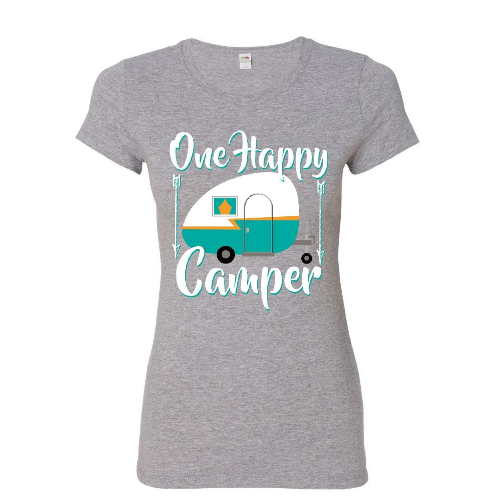 ONE HAPPY CAMPER women's t-shirt camping roadtrip rv trailer shirt gray