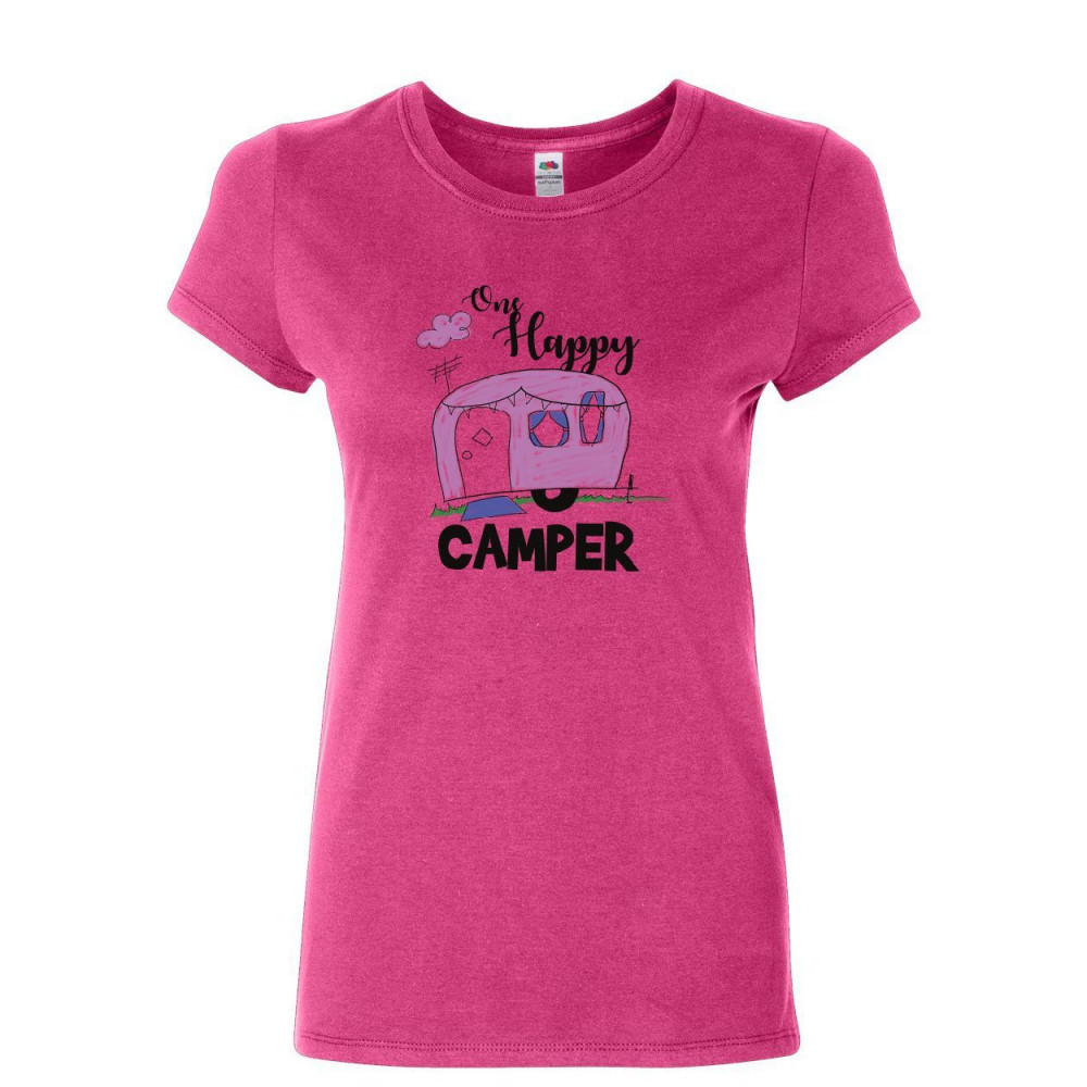 ONE HAPPY CAMPER RV one happy camper women's t-shirt rv trailer camping nature wilderness shirt hot pink