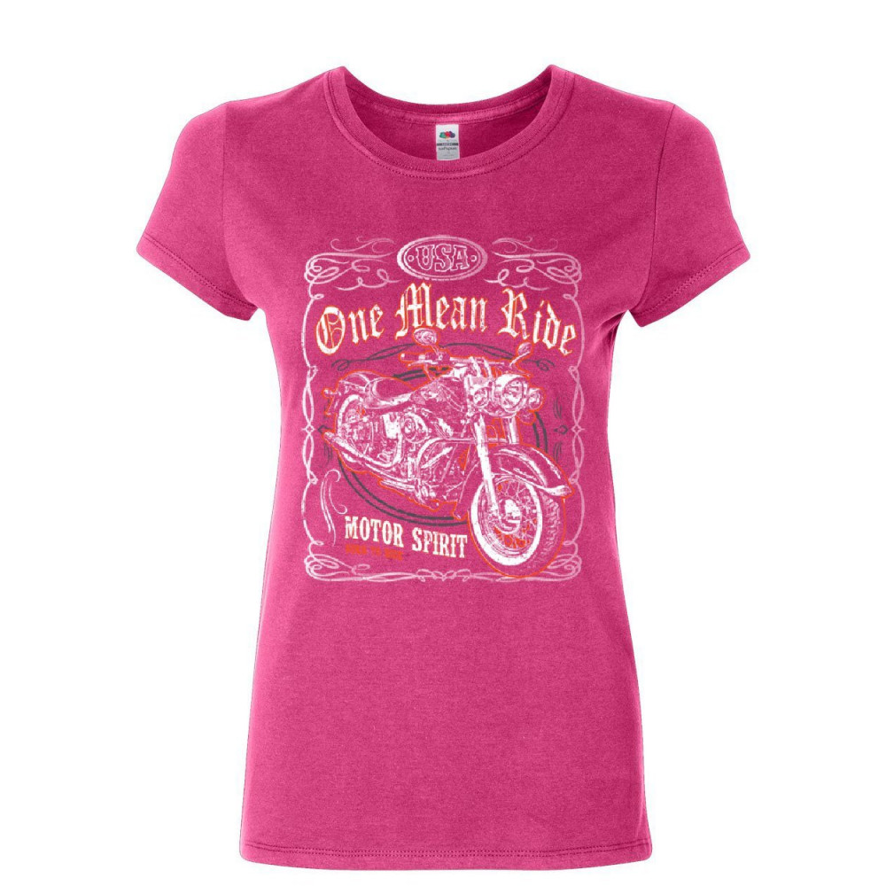 ONE MEAN RIDE women's t-shirt born to ride chopper bobber route 66 biker shirt pink