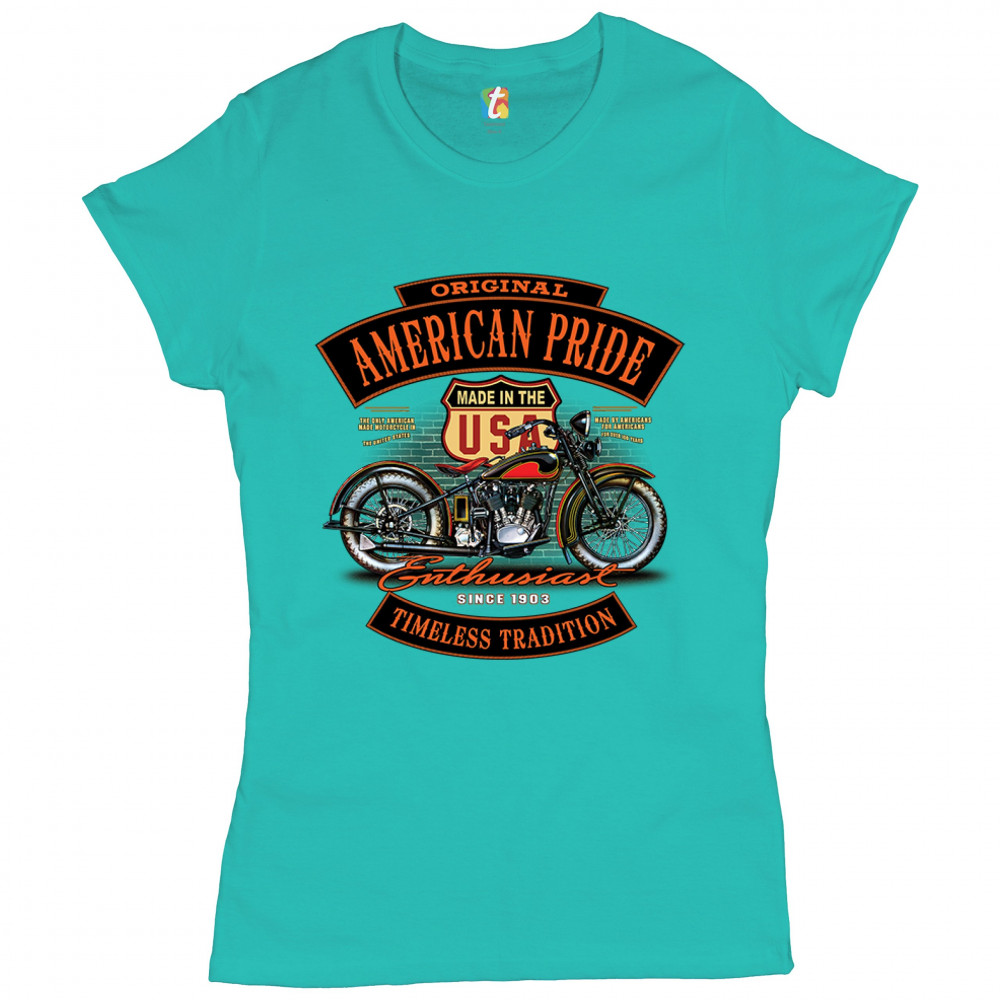 ORIGINAL AMERICAN PRIDE t-shirt biker chopper motorcycle enthusiast women's tee light blue