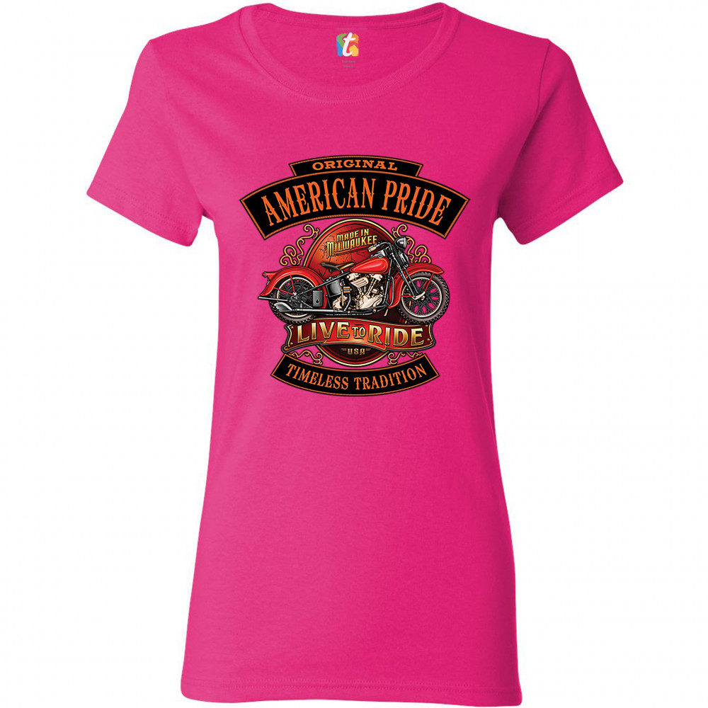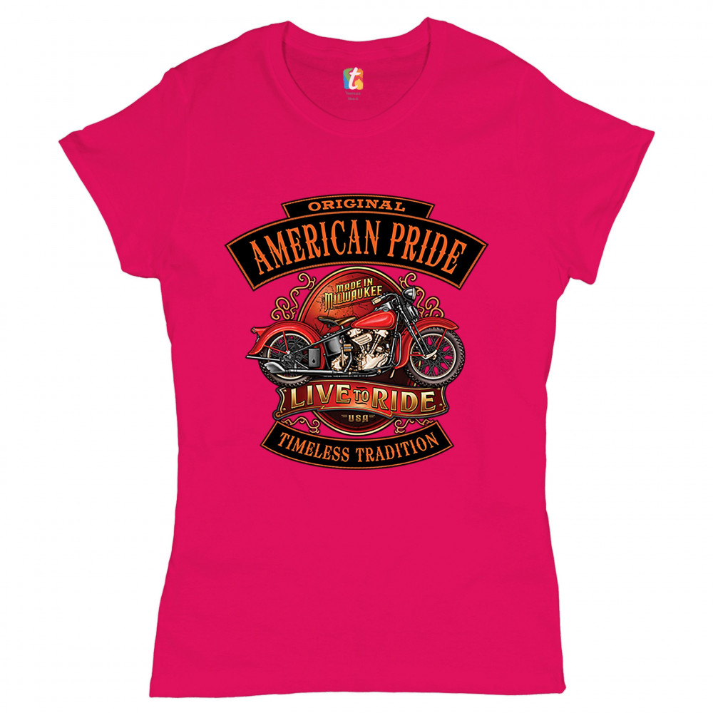 ORIGINAL AMERICAN PRIDE t-shirt live to ride timeless tradition women's tee pink