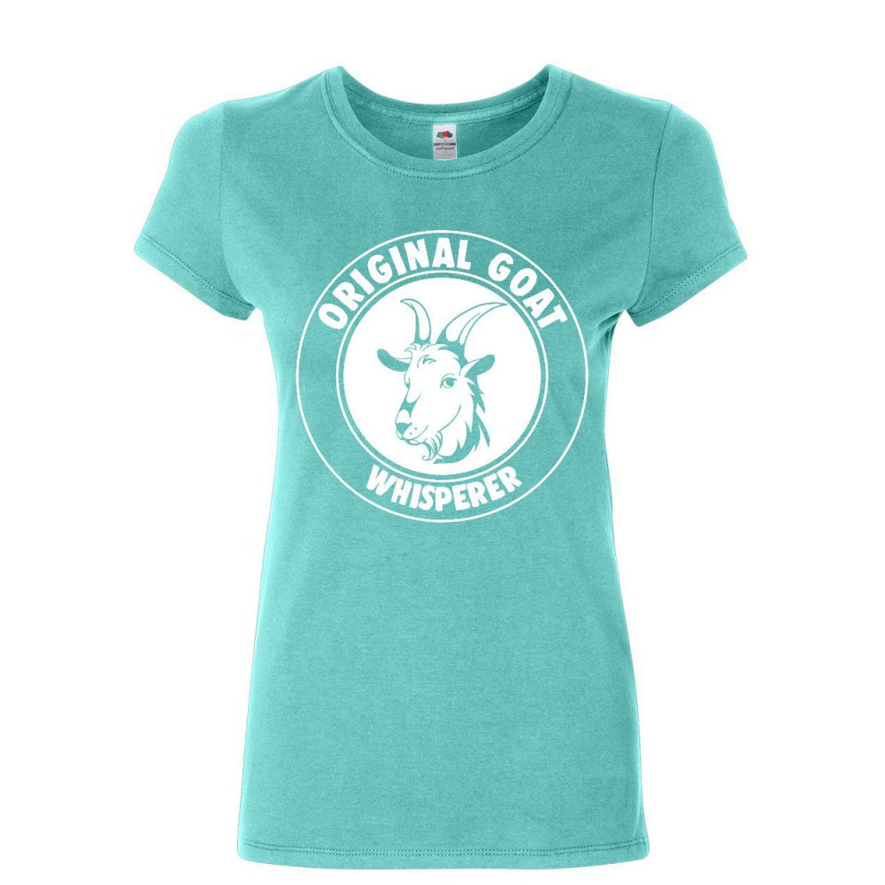ORIGINAL GOAT WHISPERER women's t-shirt funny animal farm cowboy country shirt light blue