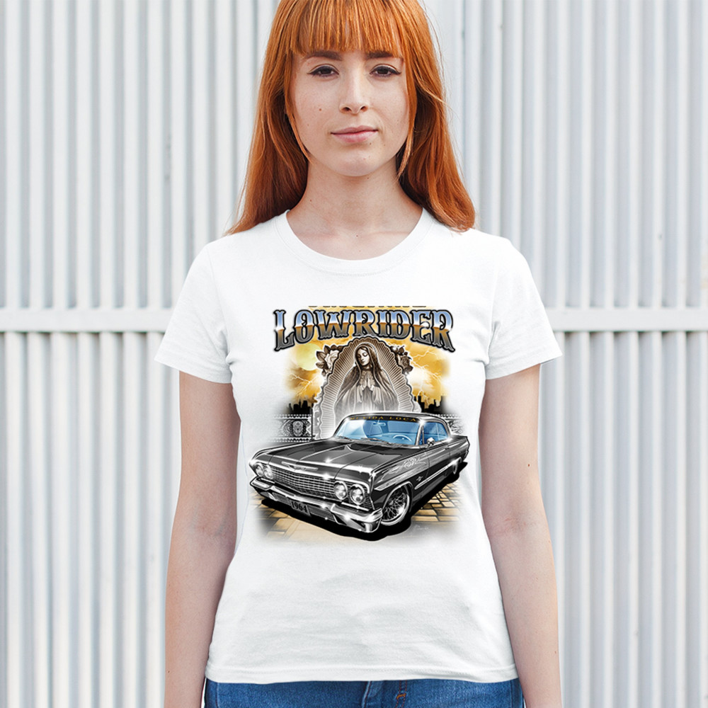 Unleash your love for custom cars with our "Original Lowrider" t-shirt. Showcasing a meticulously detailed 1964 lowrider, this shirt is a must-have for anyone passionate about car culture and street art. Whether you're attending a car show, hitting the streets, or just hanging out, this tee combines style and comfort. Made from premium materials, it ensures lasting quality and a great fit. Make your wardrobe stand out with this iconic lowrider design.
