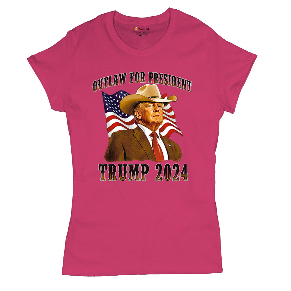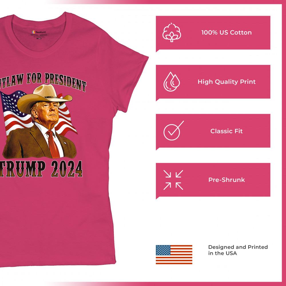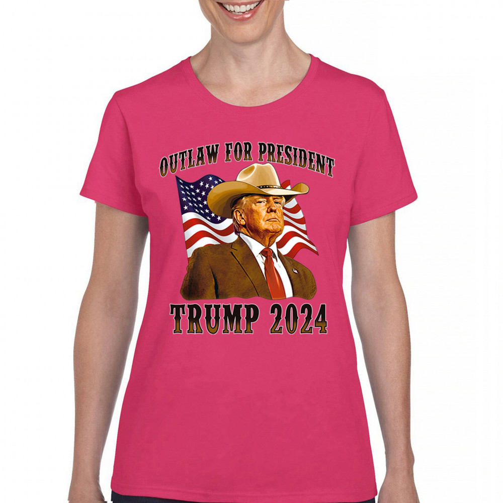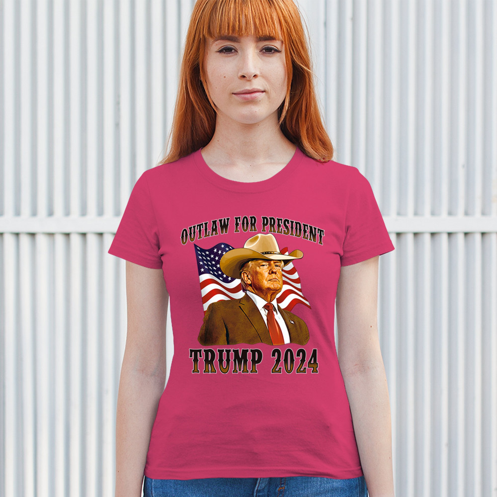 Bold "Outlaw for President" Trump 2024 design for conservative supporters, featuring Donald J. Trump and the American flag. Show your patriotism.