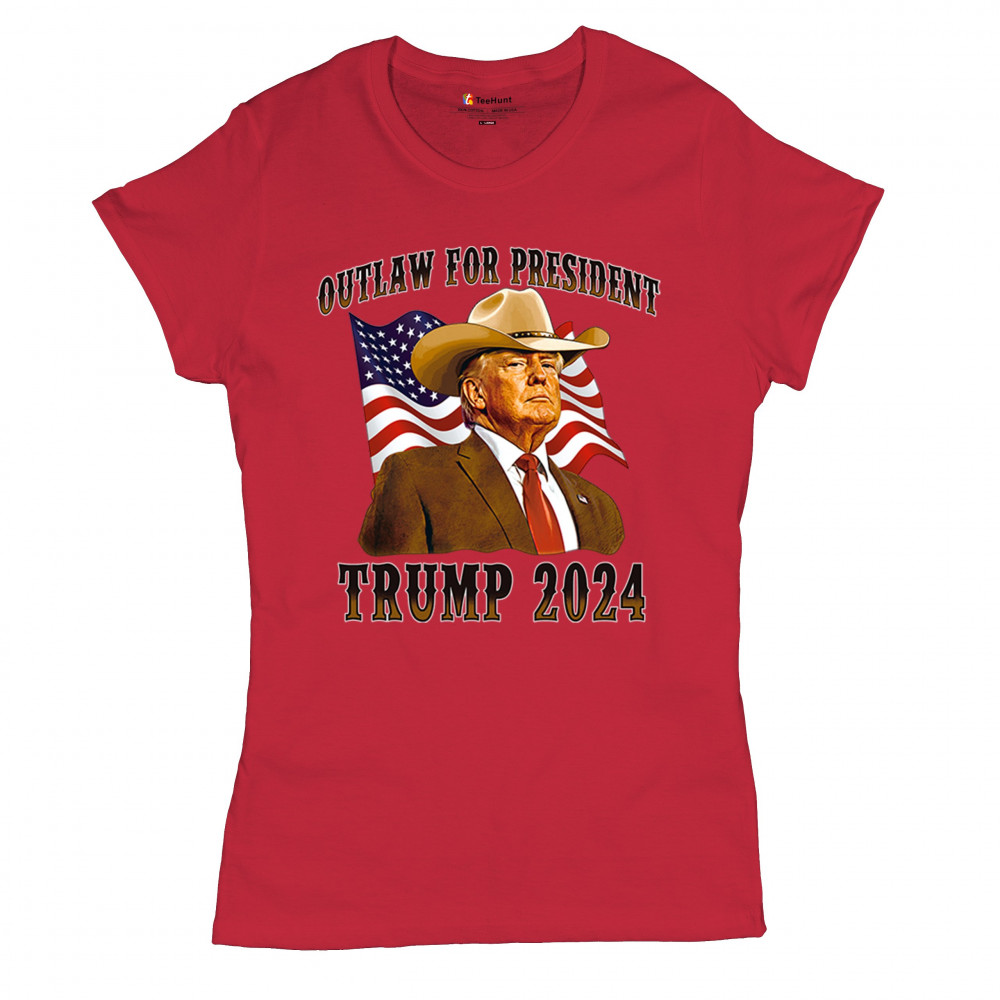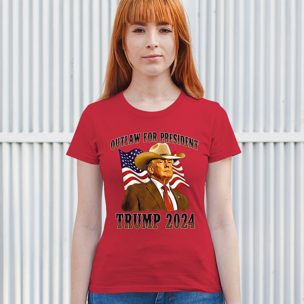 Bold "Outlaw for President" Trump 2024 design for conservative supporters, featuring Donald J. Trump and the American flag. Show your patriotism.