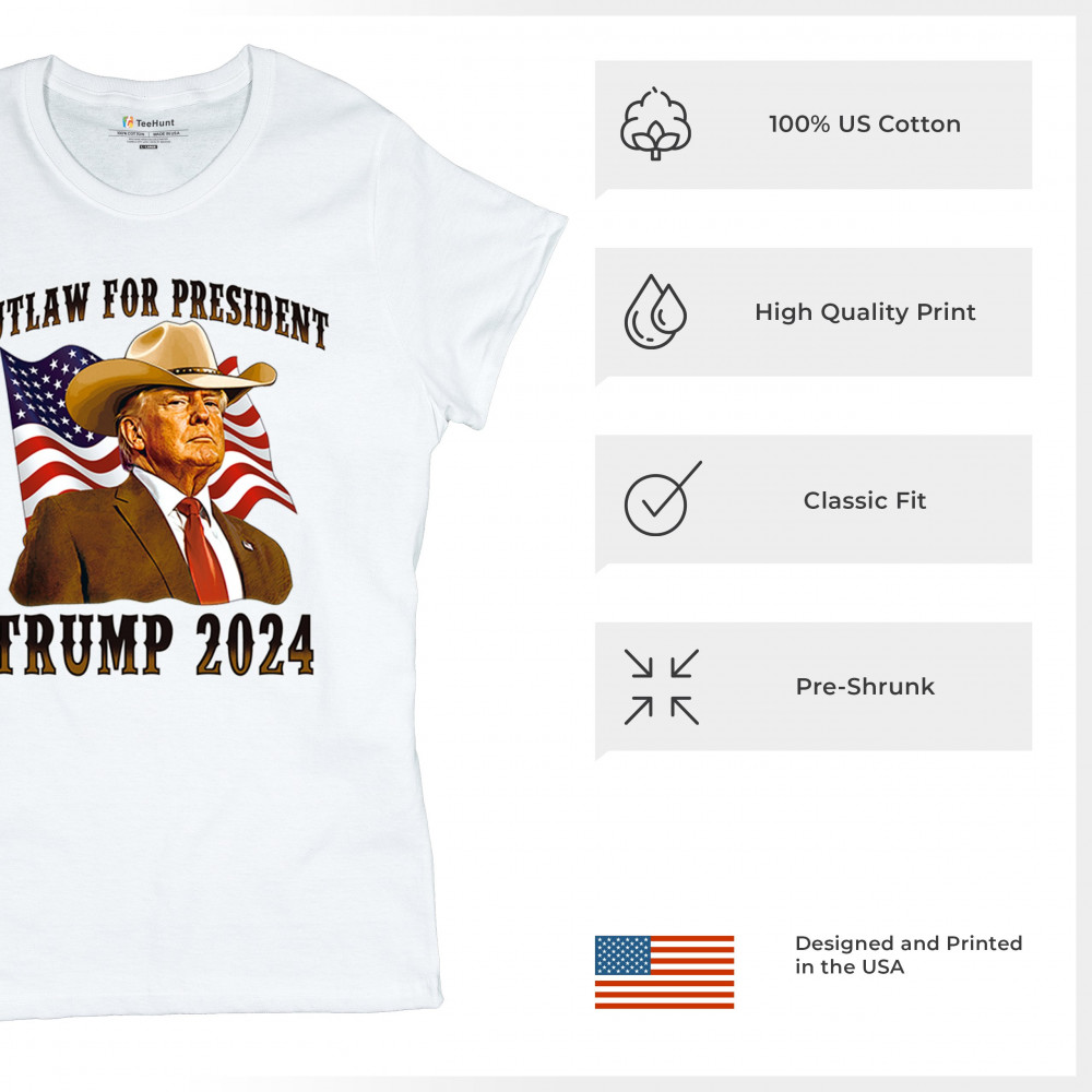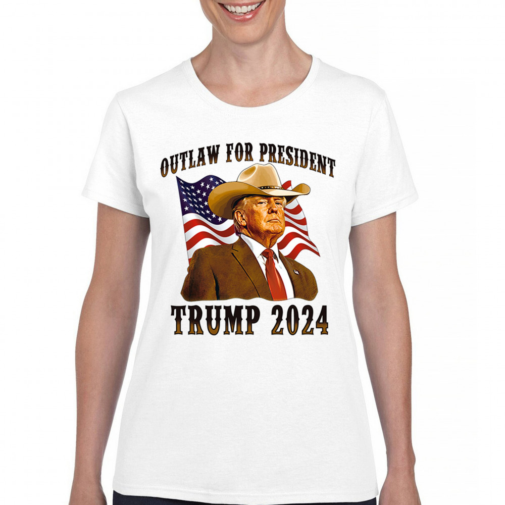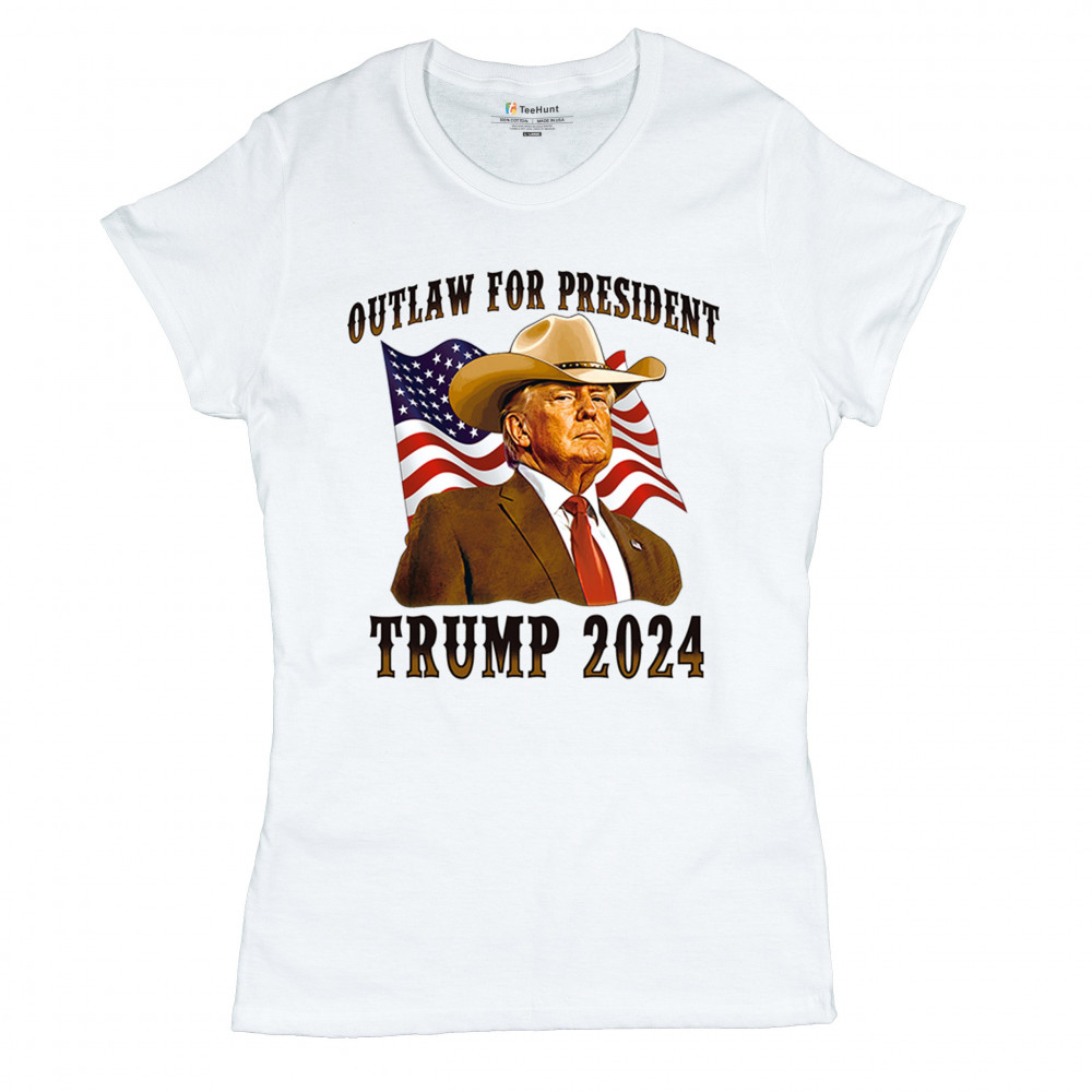 Bold "Outlaw for President" Trump 2024 design for conservative supporters, featuring Donald J. Trump and the American flag. Show your patriotism.