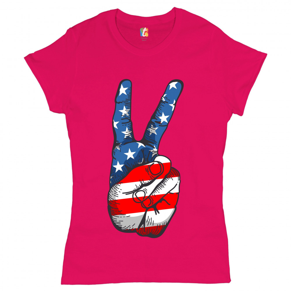 PATRIOTIC VICTORY SIGN t-shirt american flag usa independence day women's tee pink
