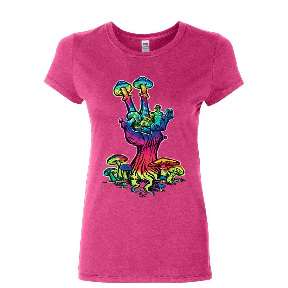 MUSHROOM PEACE peace mushroom women's t-shirt shroom hippie fungi colorful neon love shirt hot pink