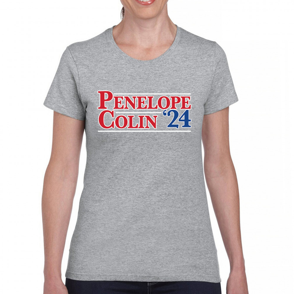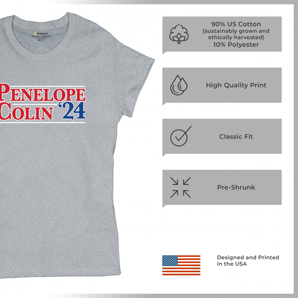 Step into the 2024 election season with a touch of humor and flair with our Penelope and Colin shirt. Designed for fans of political satire and pop culture, this shirt combines quality with a clever twist. Made from soft, high-quality fabric, it ensures comfort and longevity. Perfect for rallies, parties, or just a day out, this shirt will surely make you the center of attention. Embrace the fun side of politics and make a statement with this unique design.