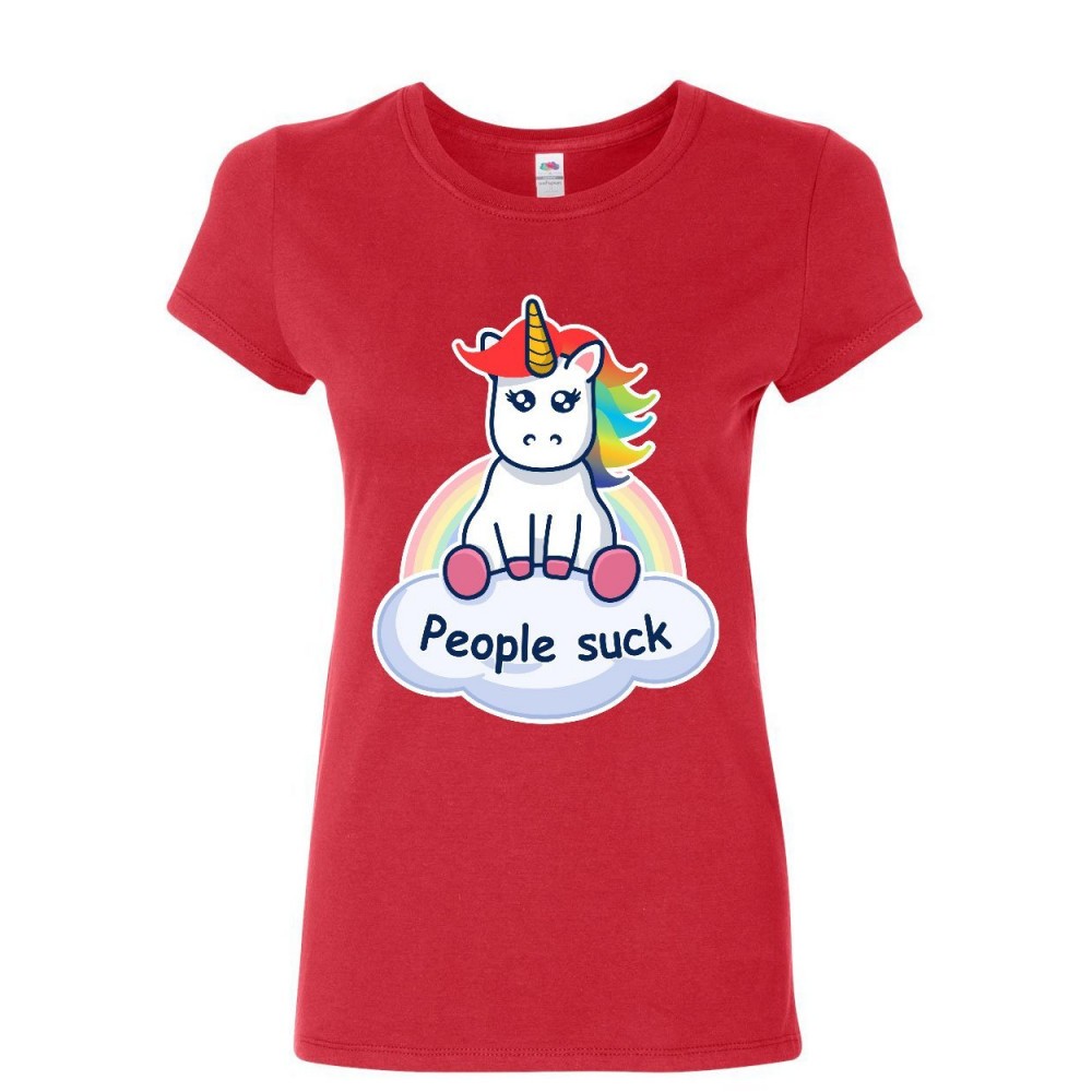 PEOPLE SUCK cute unicorn women's t-shirt funny rainbow pony introvert shirt red