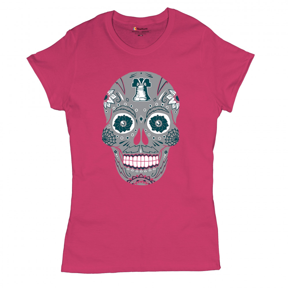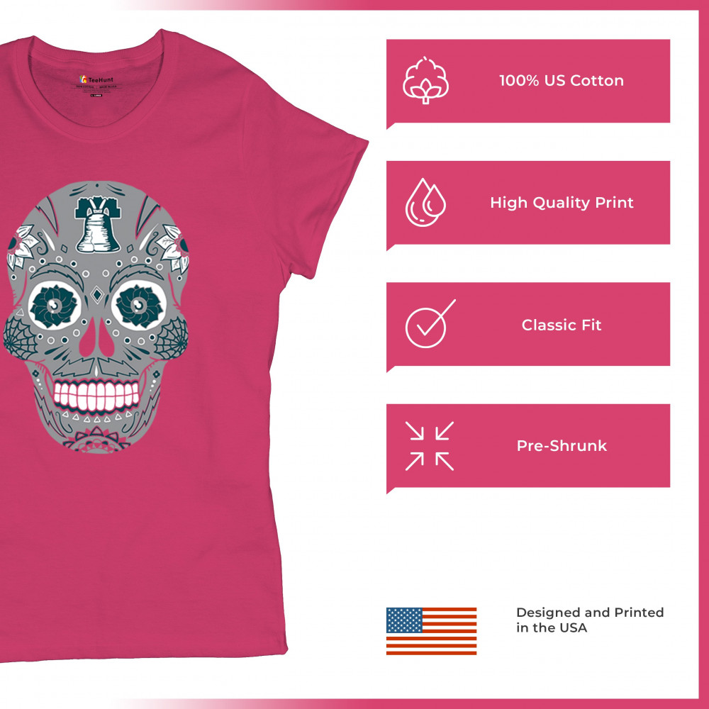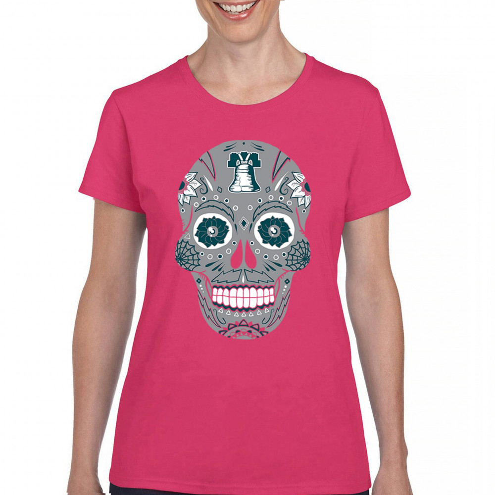 Philly meets tradition in this Sugar Skull design, mixing calavera art with the iconic liberty bell and marigold flowers. Perfect for Philly sports culture, fantasy league energy, or game day skull vibes, it captures Philly gothic art and fan zone spirit. A unique way to honor Dia de los Muertos while showing local Philadelphia pride and heritage in bold style.