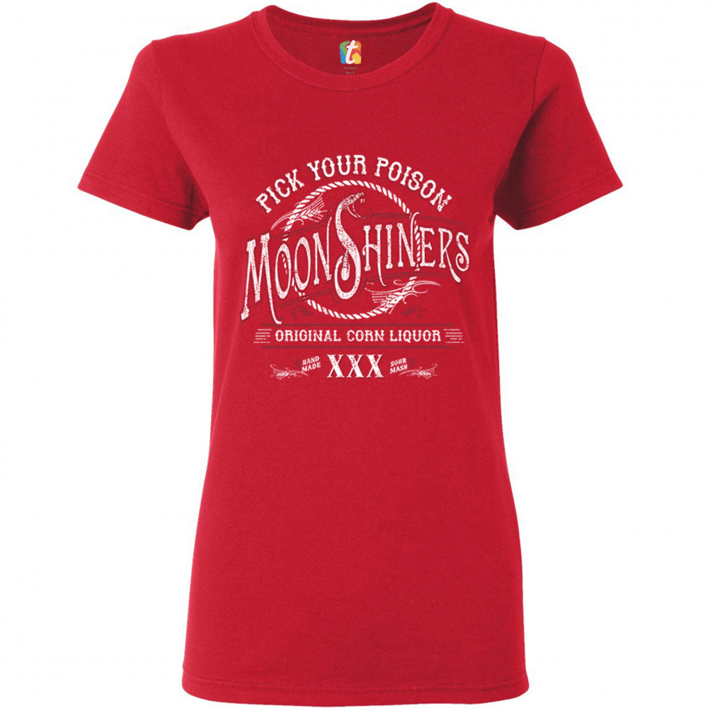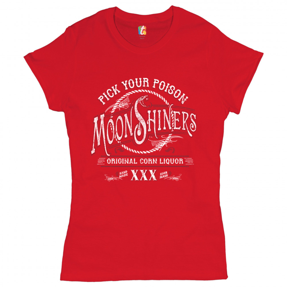 PICK YOUR POISON MOONSHINERS t-shirt original corn liquor xxx women's tee red