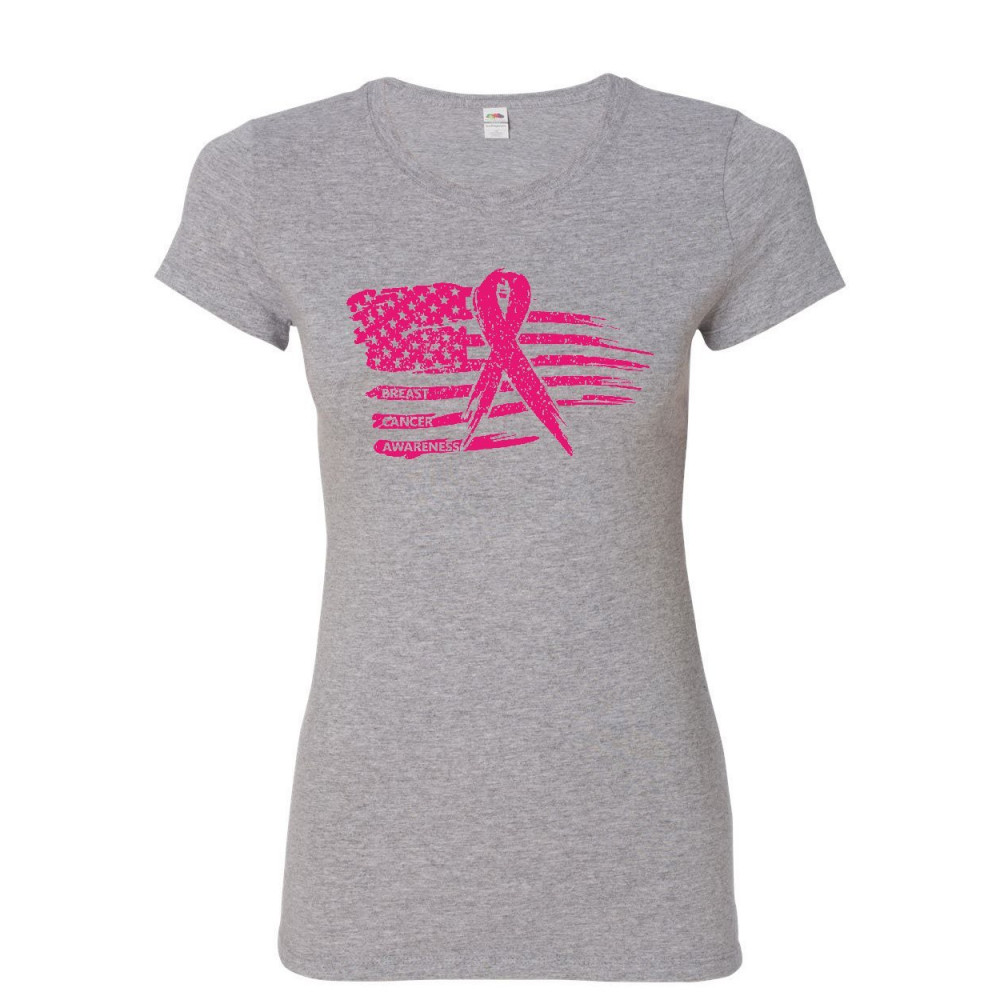 PINK RIBBON AMERICAN FLAG pink ribbon flag women's t-shirt breast cancer awareness hope survivor shirt gray