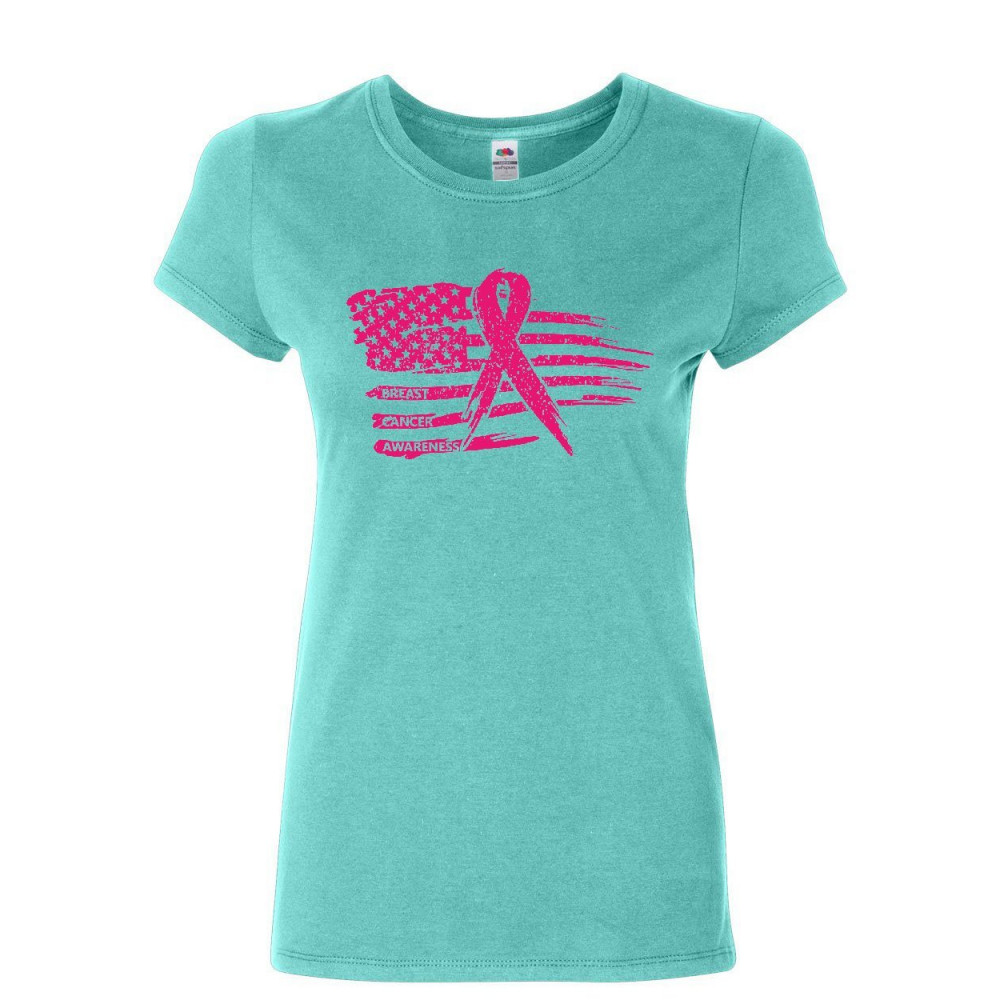 PINK RIBBON AMERICAN FLAG pink ribbon flag women's t-shirt breast cancer awareness hope survivor shirt light blue