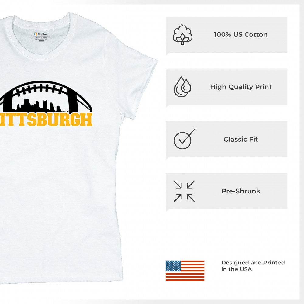Embrace your Steel City pride with this bold Pittsburgh-themed design, showcasing the city skyline in a unique football graphic. Perfect for game day celebrations, tailgating parties, or everyday wear, this design captures the energy and passion of Pittsburgh's legendary sports culture. Whether you're cheering on your favorite team or representing your city, this design is a must-have for Pittsburgh fans.