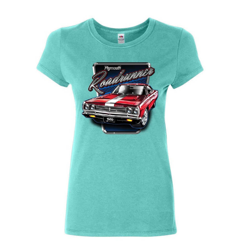 PLYMOUTH ROADRUNNER women's t-shirt american muscle car classic route 66 shirt light blue