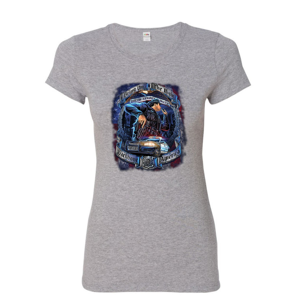 POLICE - BACKBONE OF AMERICA police backbone of america women's t-shirt valor service duty cop patrol shirt gray