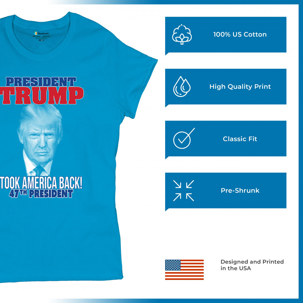 Support President Trump, the 47th President, with a design that proudly states “Took America Back.†Show your America First spirit and conservative pride.