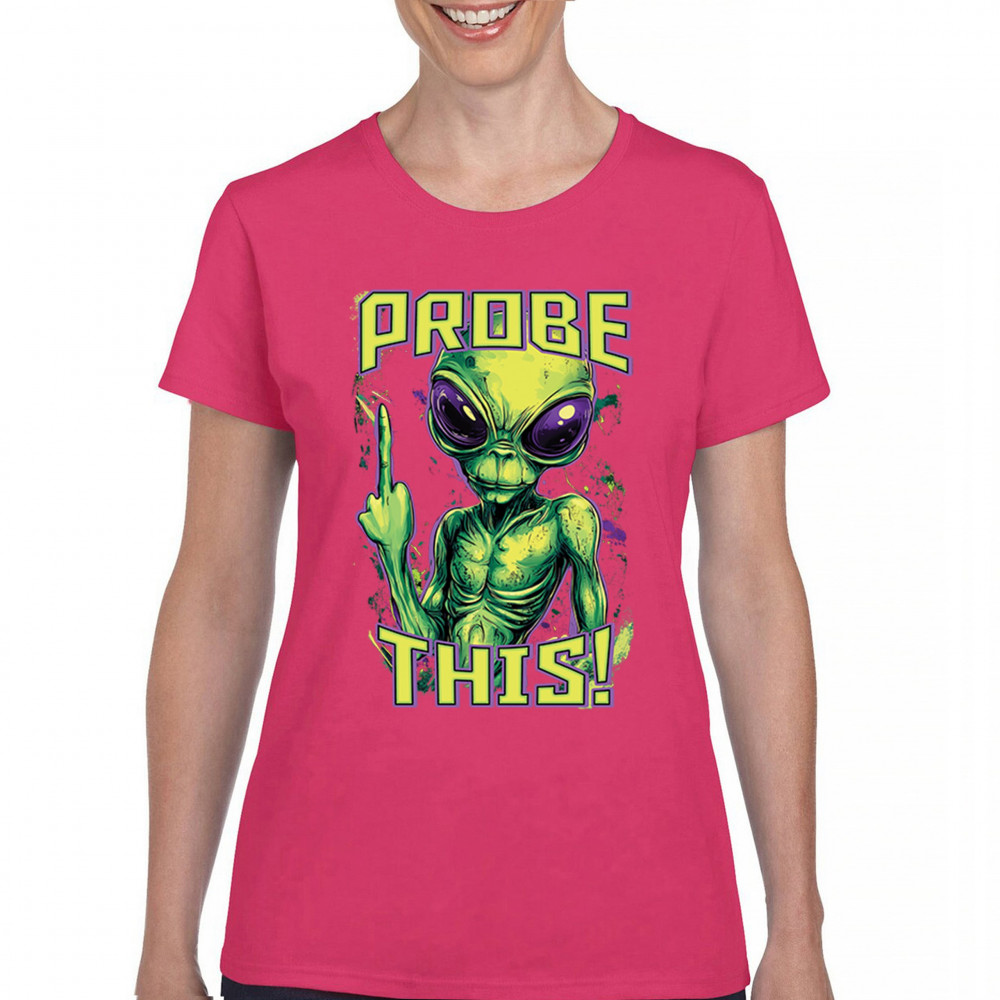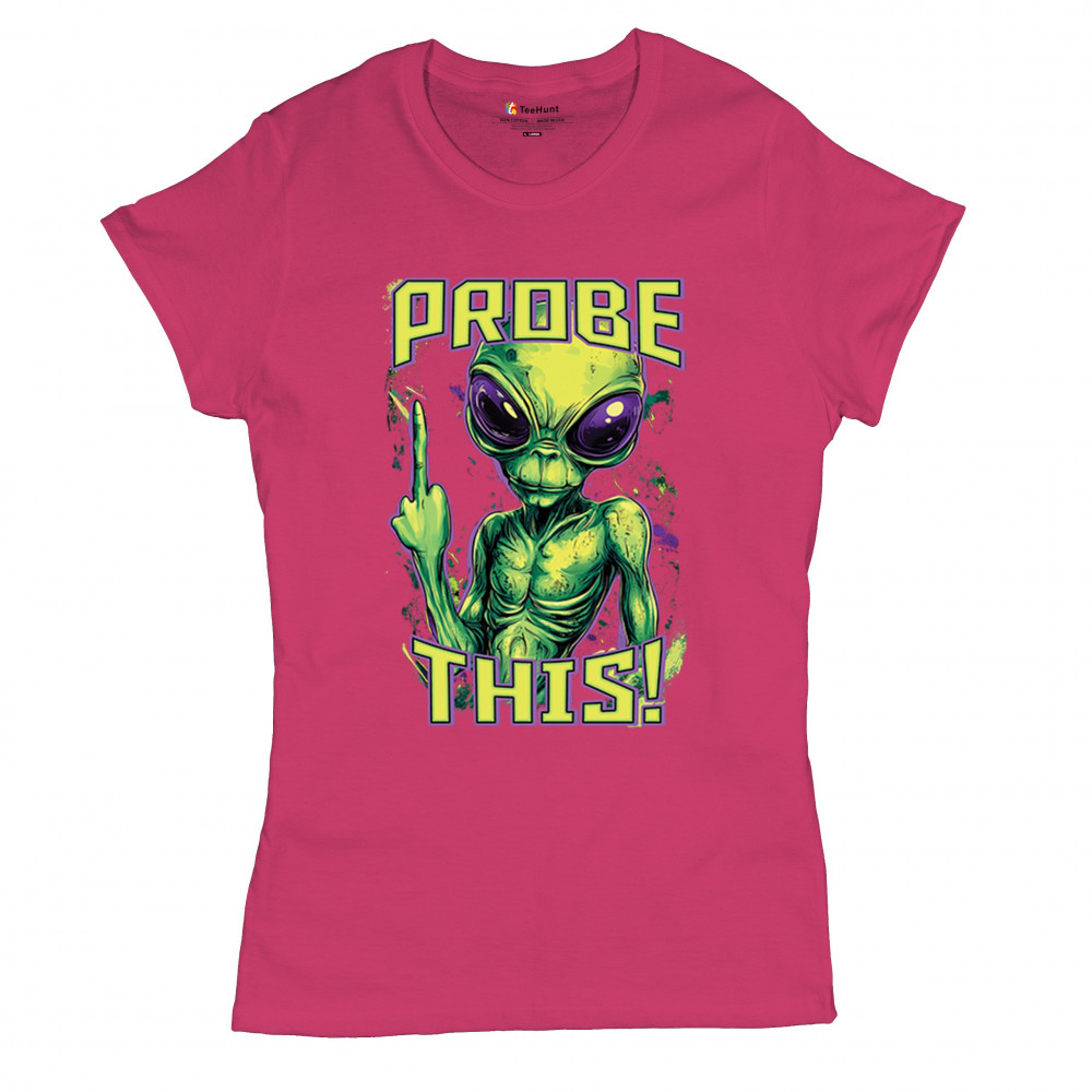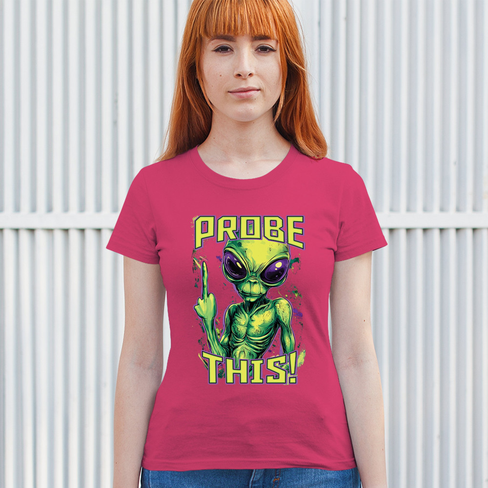 Alien attitude goes full throttle in this rebellious design featuring a defiant extraterrestrial flipping the bird. Bold green and purple tones amplify the sarcasm, making it perfect for UFO fans, protest vibes, and anyone with a dark sense of humor. Wear it loud to alien fests, parties, or anytime you want to stir the stars.