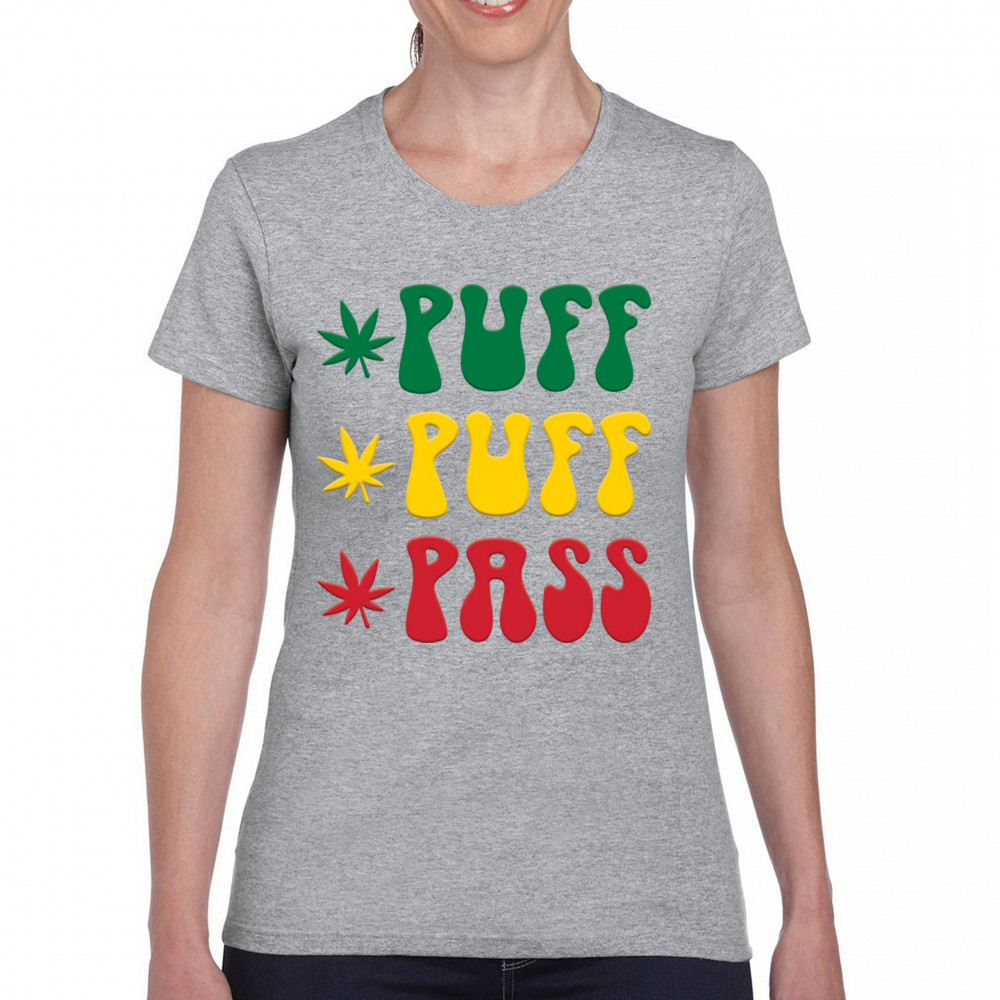 Get into the groove with our "Puff Puff Pass" T-shirt, a vibrant nod to Rasta culture and camaraderie. A bold, carefree statement for the chilled out.