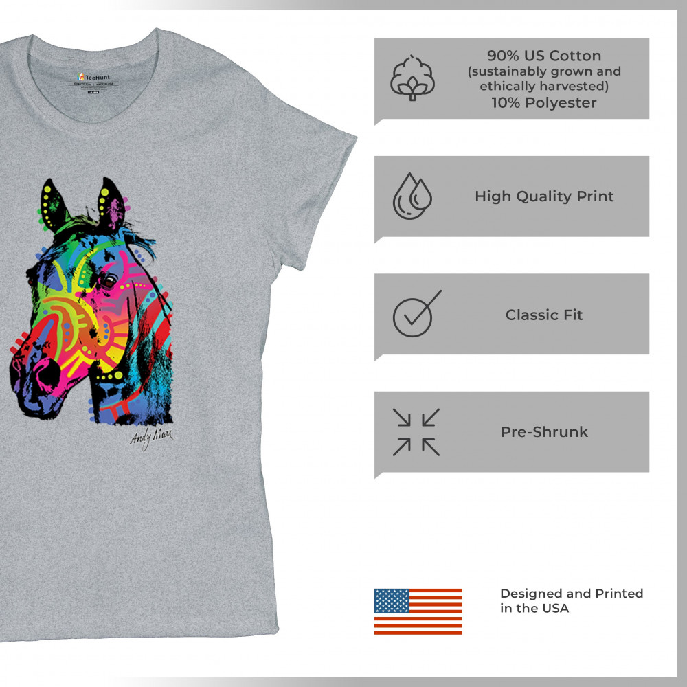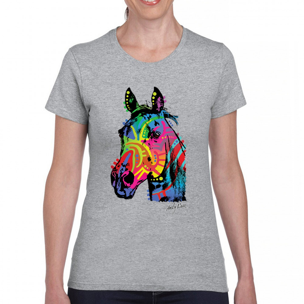 Bold rainbow horse head design with abstract pop art style. Great for equestrians, color lovers, and fans of modern animal artwork.