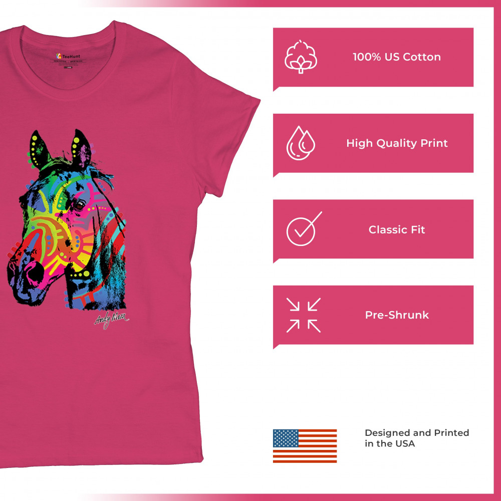 Bold rainbow horse head design with abstract pop art style. Great for equestrians, color lovers, and fans of modern animal artwork.