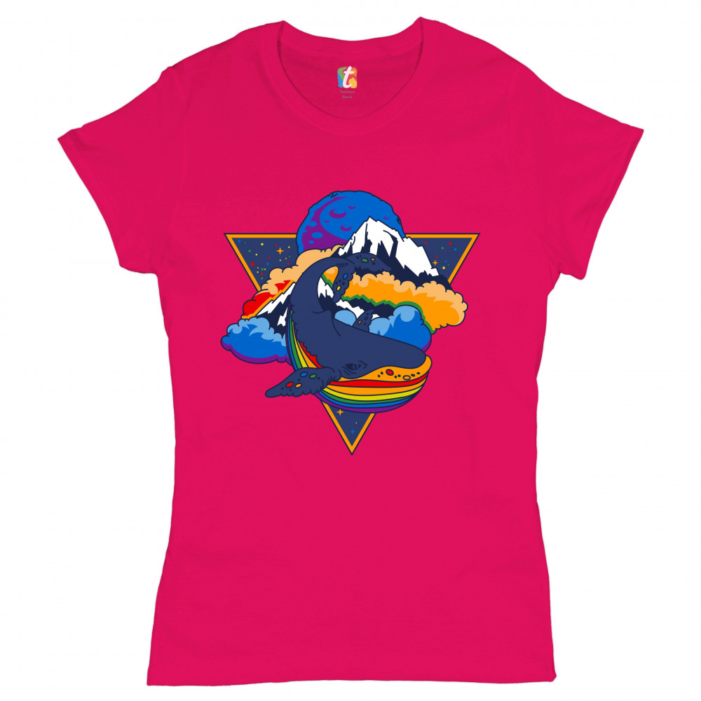 RAINBOW SPACE WHALE t-shirt lgbt pride queer tolerance trippy women's tee pink