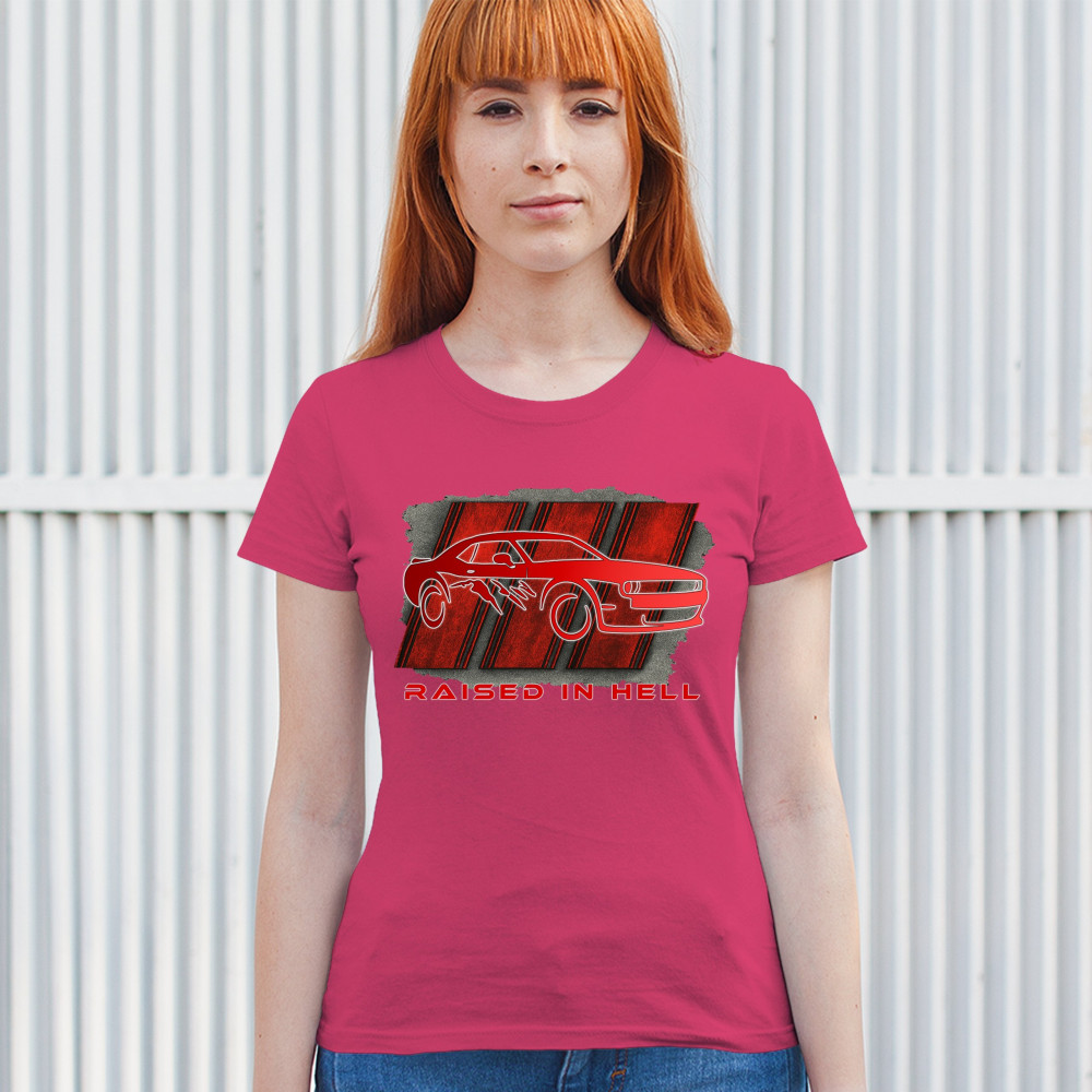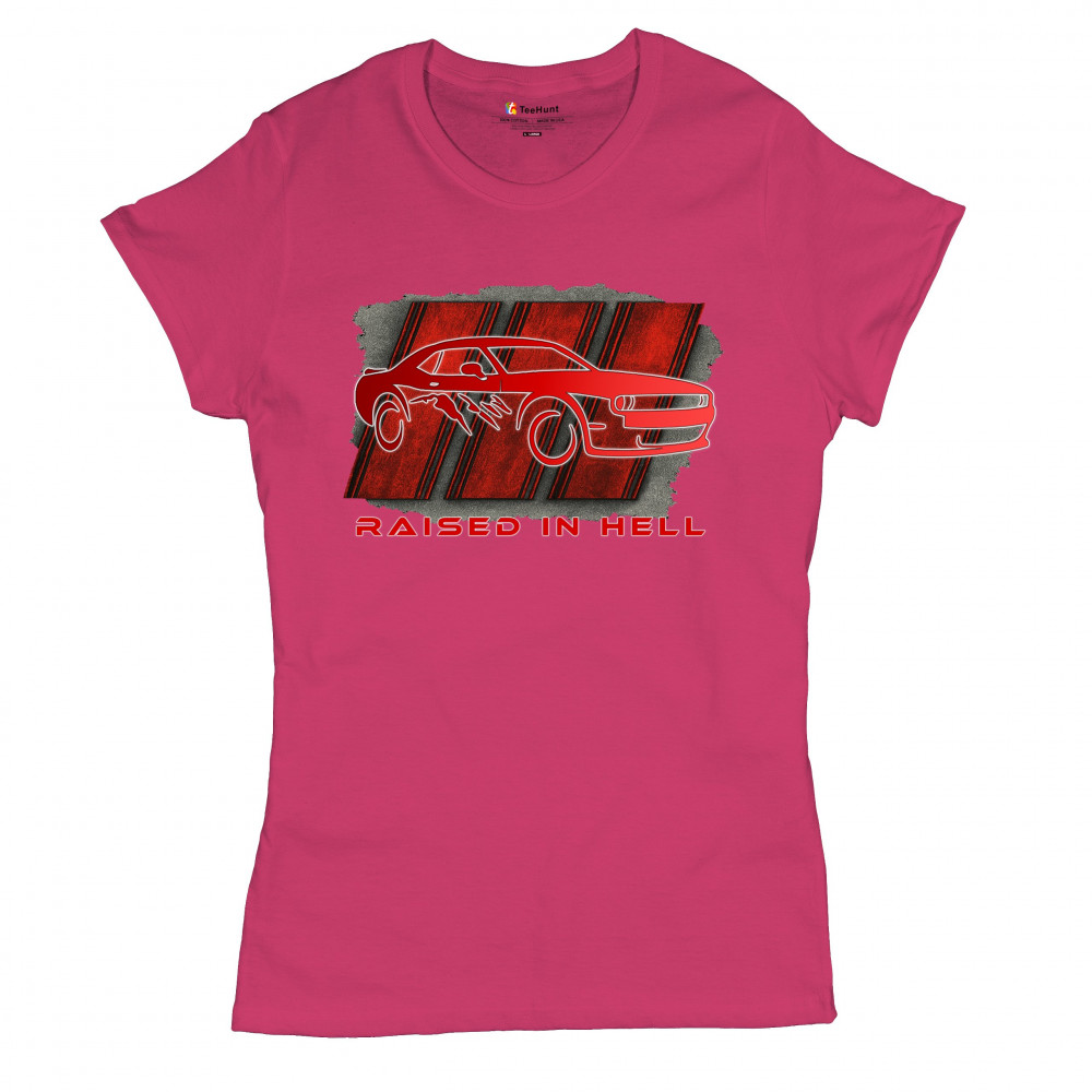 Bring heat to the streets with this Raised in Hell design. Featuring a blazing red muscle car and aggressive claw marks, it's perfect for Scat Pack lovers, burnout warriors, and throttle addicts. Whether you're tearing down the strip or parked at the meet, this design delivers pure muscle attitude and street-born fire.