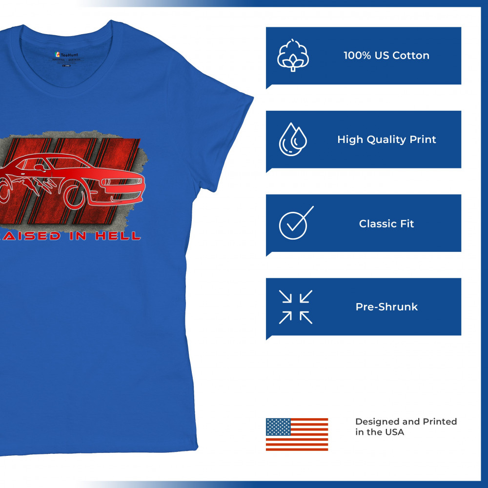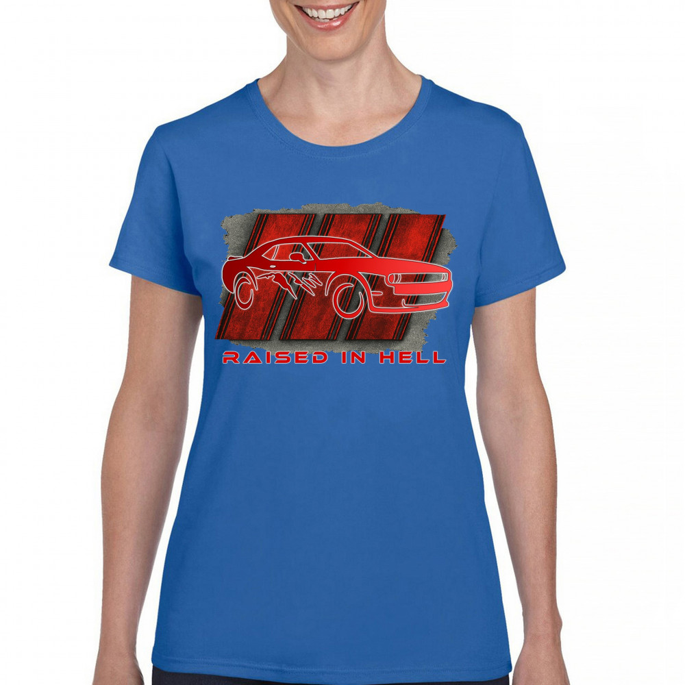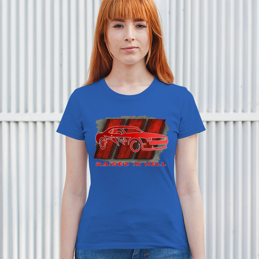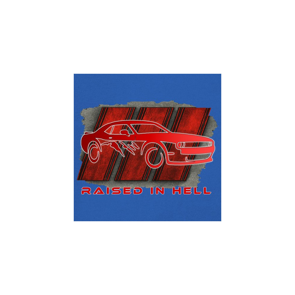 Bring heat to the streets with this Raised in Hell design. Featuring a blazing red muscle car and aggressive claw marks, it's perfect for Scat Pack lovers, burnout warriors, and throttle addicts. Whether you're tearing down the strip or parked at the meet, this design delivers pure muscle attitude and street-born fire.