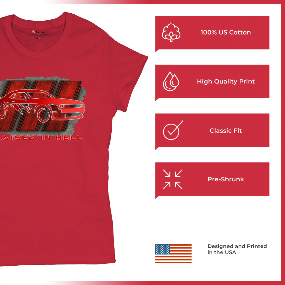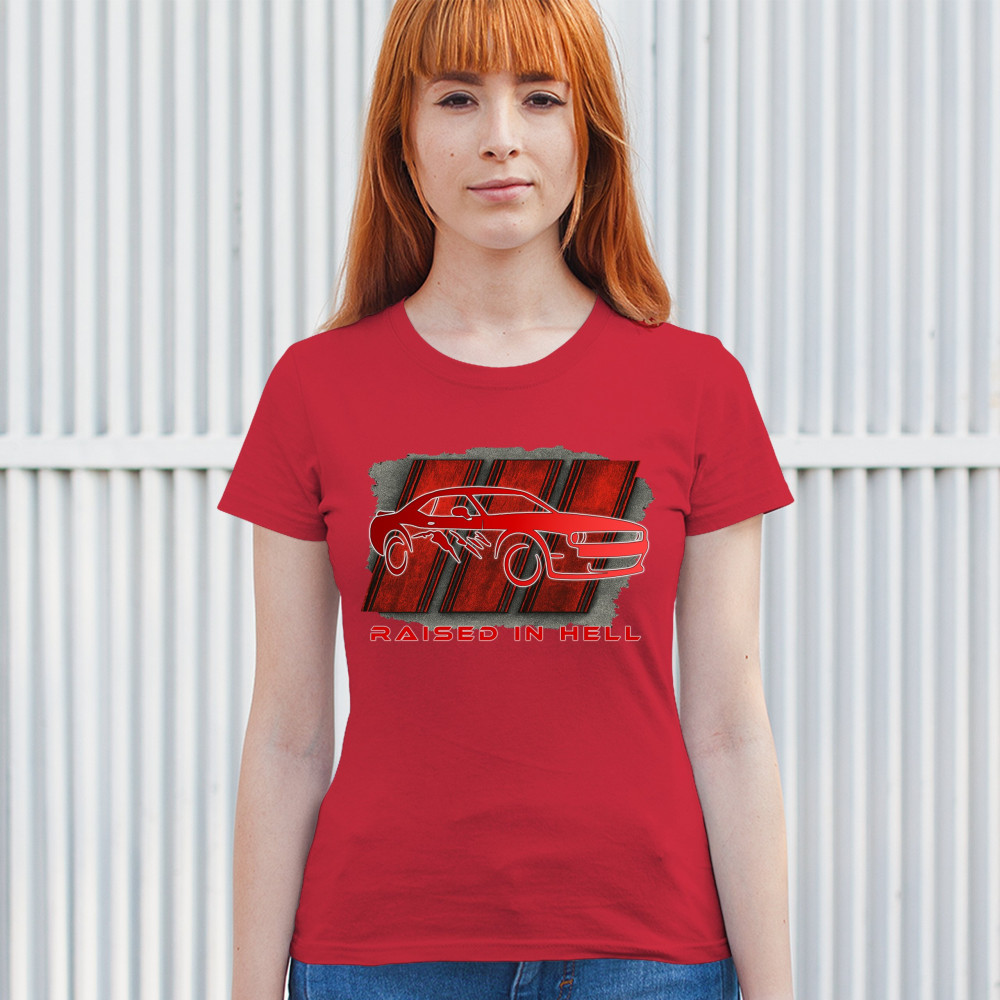 Bring heat to the streets with this Raised in Hell design. Featuring a blazing red muscle car and aggressive claw marks, it's perfect for Scat Pack lovers, burnout warriors, and throttle addicts. Whether you're tearing down the strip or parked at the meet, this design delivers pure muscle attitude and street-born fire.