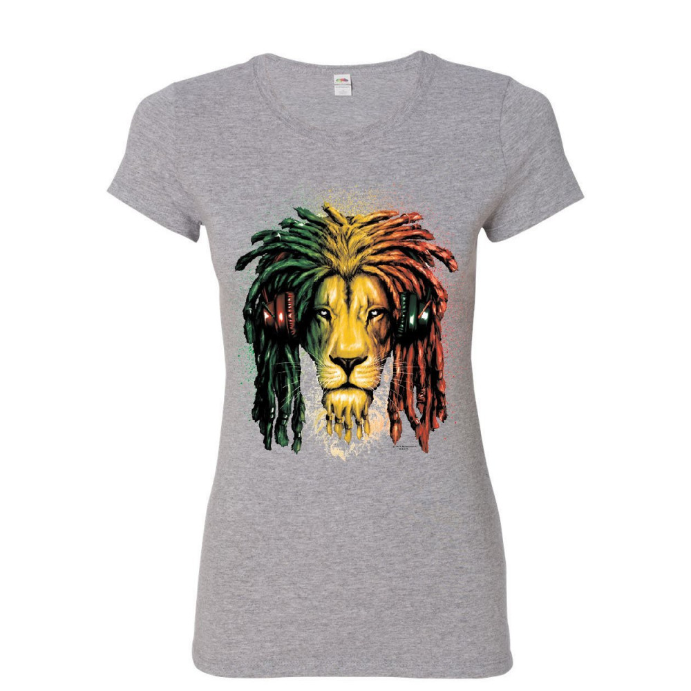 RASTA LION WITH HEADPHONES 420 rasta lion with headphones cotton t-shirt reggae smoking jamaica 420 gray