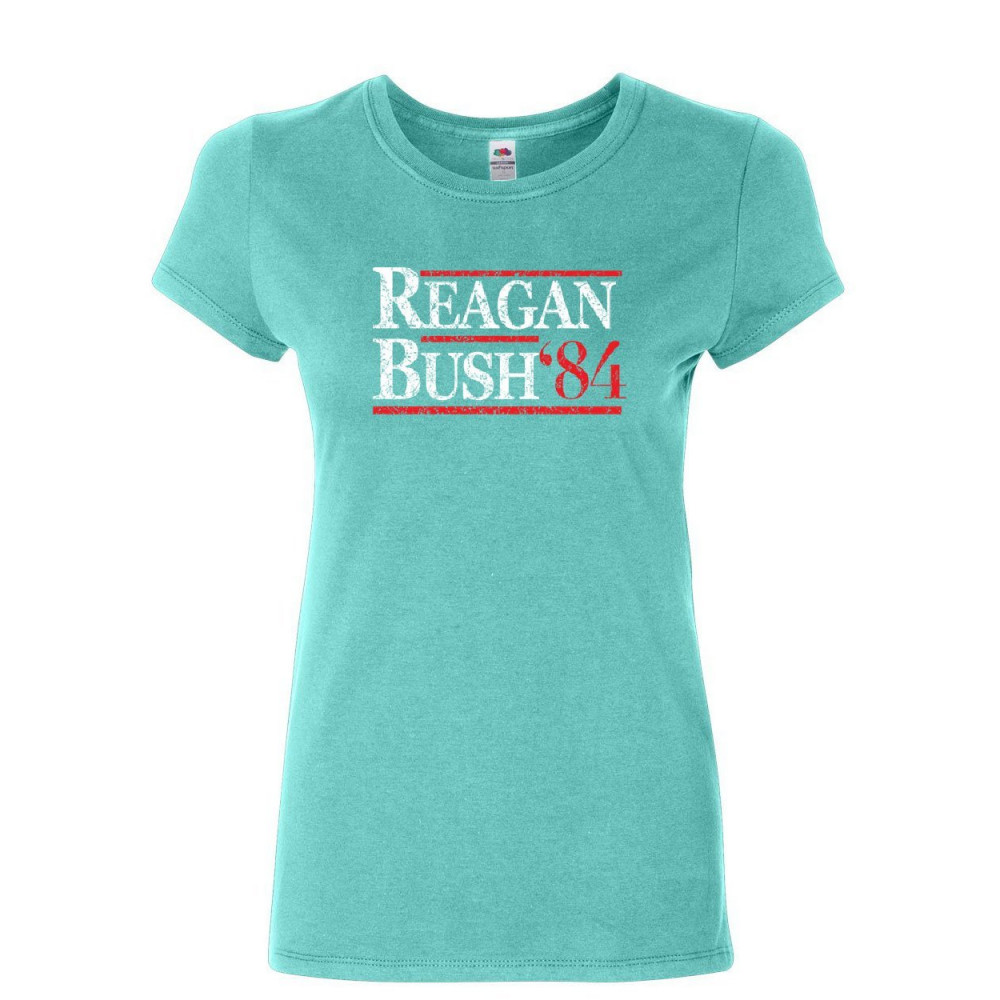 REAGAN BUSH '84 women's t-shirt ronald american president history gop shirt light blue