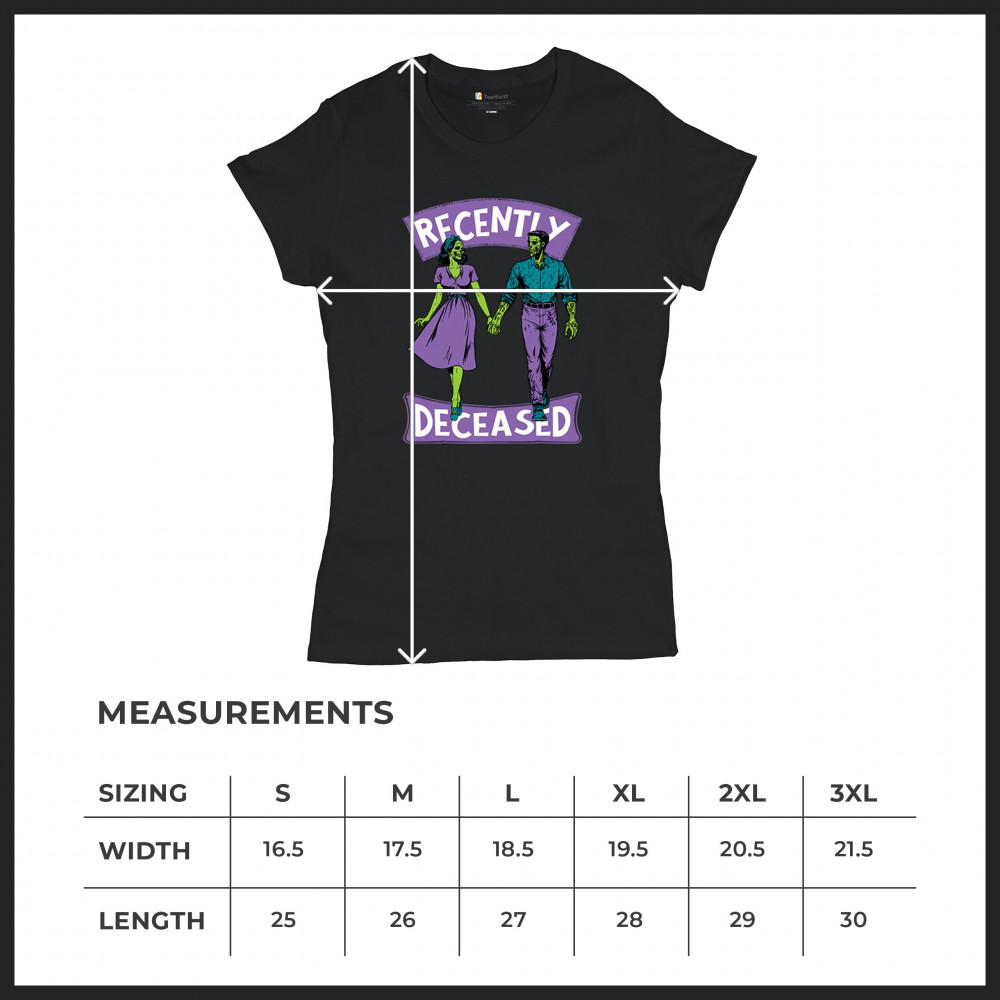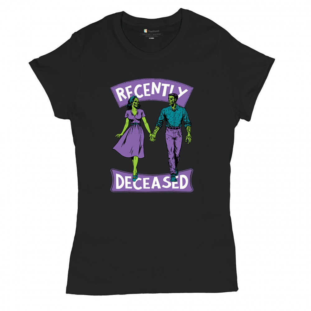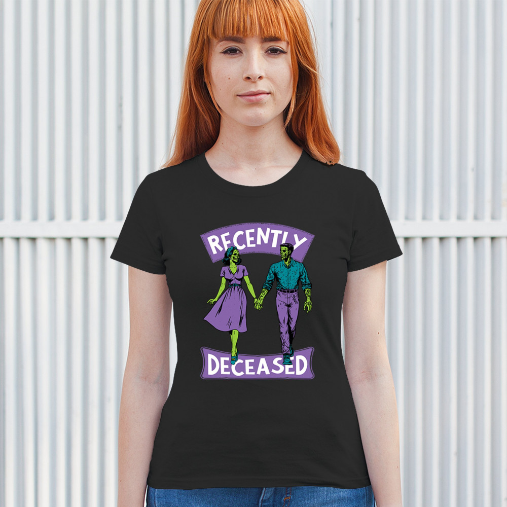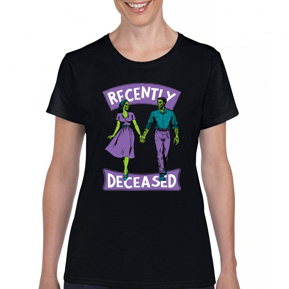 RECENTLY DECEASED t-shirt spooky halloween trick or treat zombie women's tee black