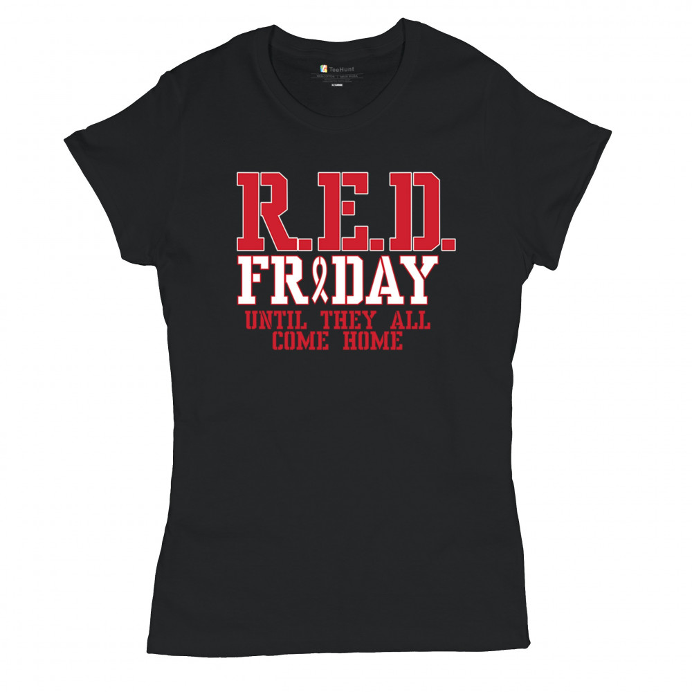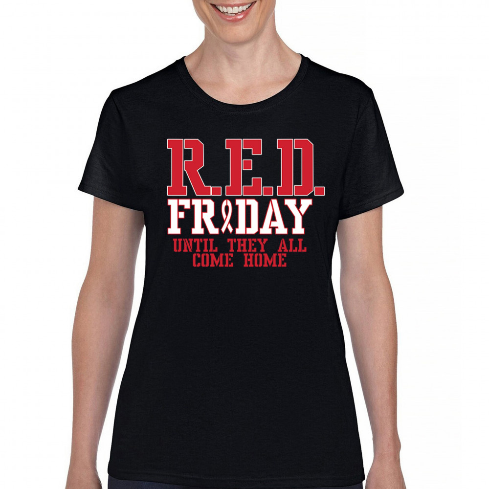 Demonstrate your support for our brave troops with this R.E.D. Friday shirt. Featuring a striking design and the heartfelt message "Until They All Come Home," this shirt is ideal for showing your patriotism and respect for those deployed. Made from premium, soft fabric, it offers lasting comfort and durability. Wear it on Veterans Day, Memorial Day, and the Fourth of July, or anytime you want to honor our military. This shirt is also a wonderful gift for anyone who stands with our troops and believes in remembering everyone deployed.