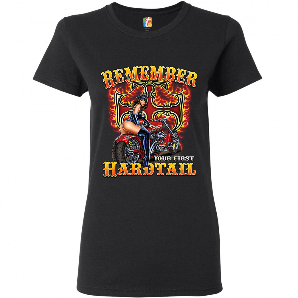 REMEMBER YOUR FIRST HARDTAIL t-shirt biker babe motorcycle chopper women's tee black