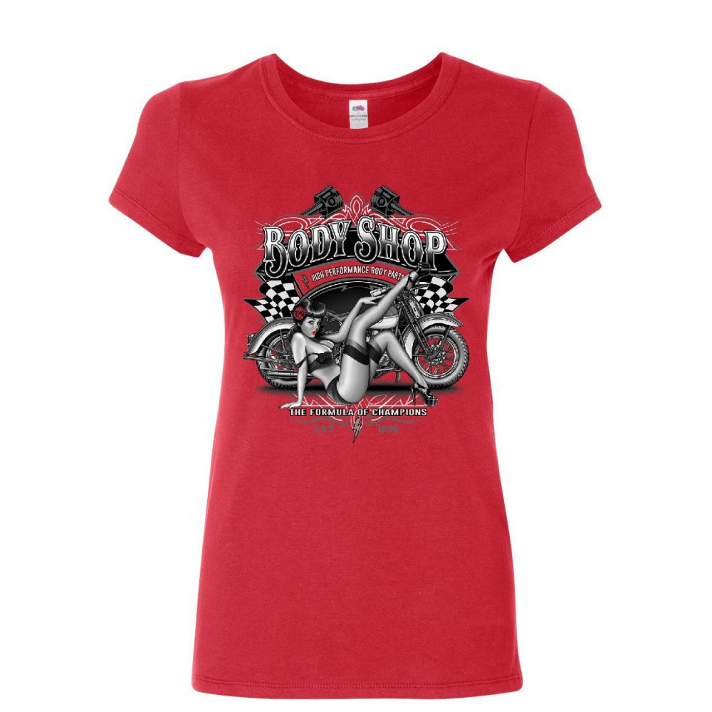 RETRO BODY SHOP women's t-shirt chopper sexy pin-up girl route 66 biker shirt red