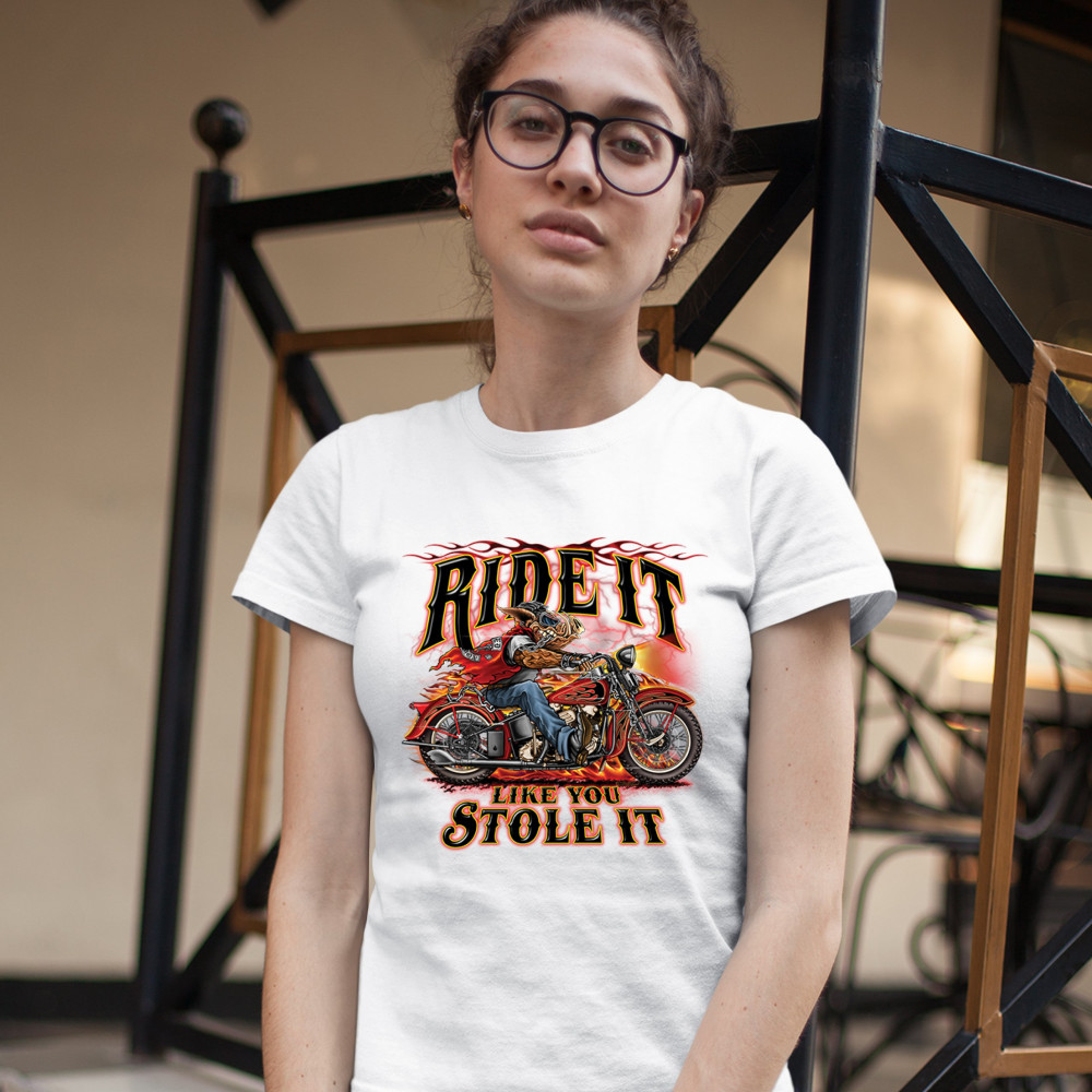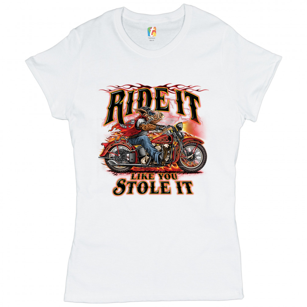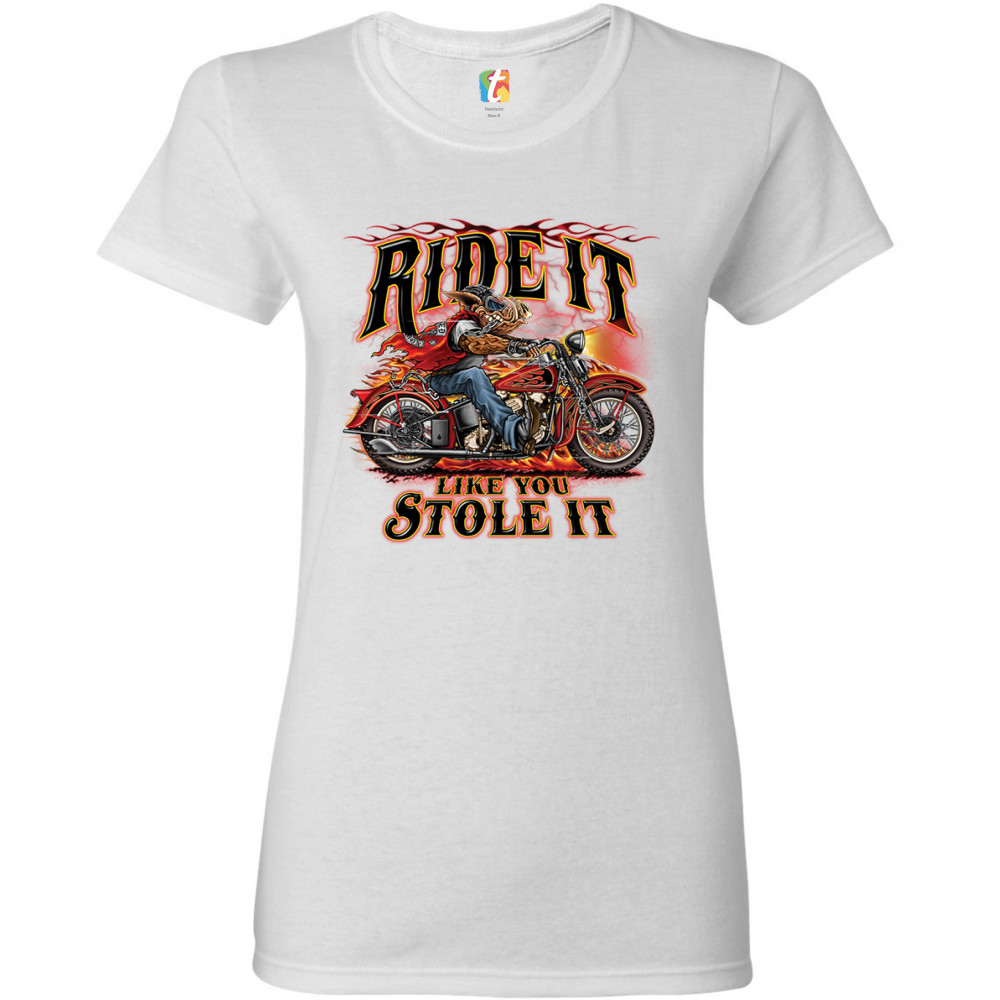 RIDE IT LIKE YOU STOLE IT t-shirt biker born to be wild motorcycle women's tee white