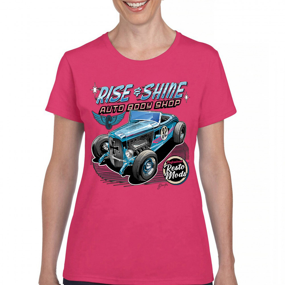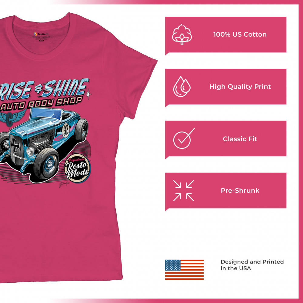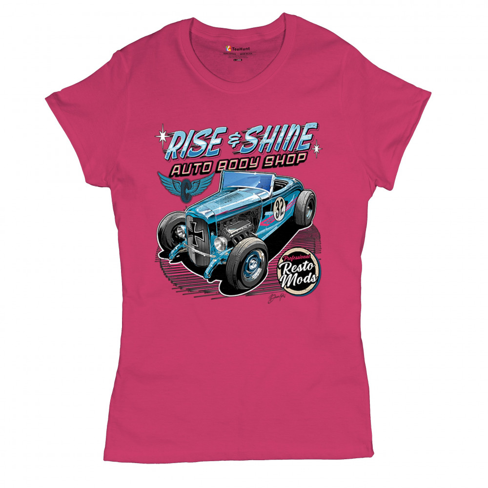 Celebrate vintage car culture with our "Rise & Shine Auto Body Shop" design. Perfect for car enthusiasts and auto restoration fans. Comfortable and durable.