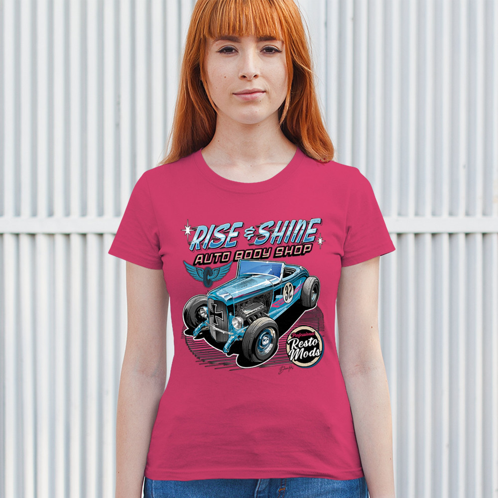 Our "Rise & Shine Auto Body Shop" design is a tribute to classic car culture and professional resto mods. This striking graphic showcases a vintage hot rod, perfect for car enthusiasts and auto restoration fans. Whether you're hitting the car show circuit or working in your garage, this design adds a touch of retro charm to your look. Crafted from premium materials, it offers both comfort and durability, ensuring it stands up to your active lifestyle. Celebrate the art of automotive restoration with this standout design.